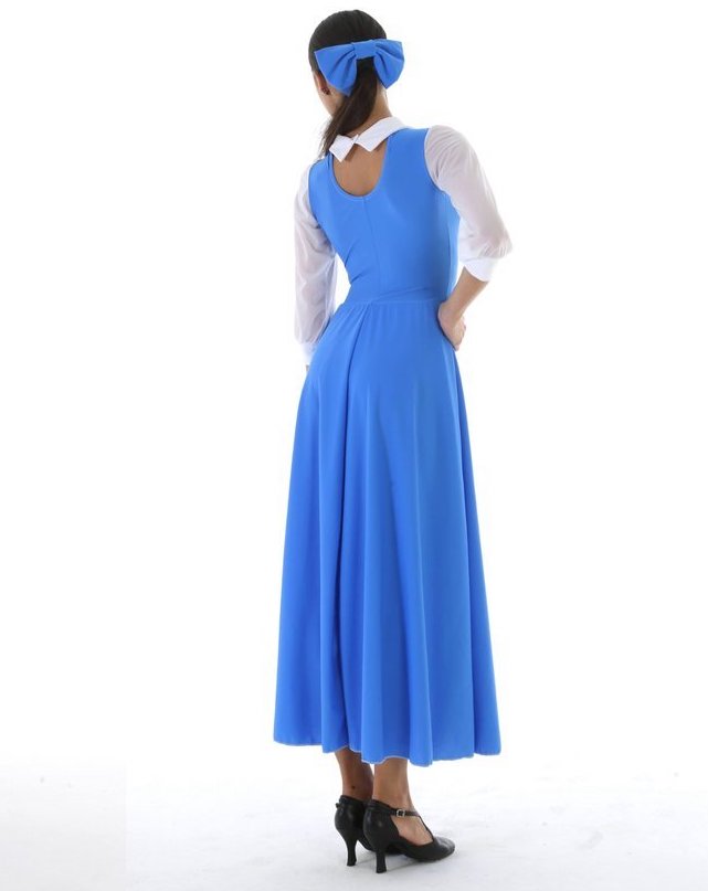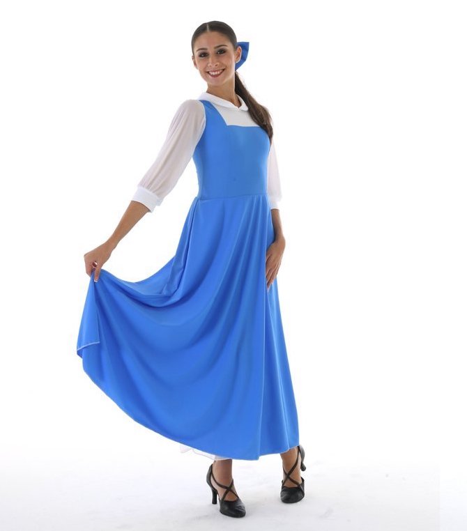 Abito montato su body, in lycra, sottogonna in scintilla, maniche 3/4 e colletto, gonna a semiruota, perfetto per allestire un saggio sulla Bella e la Bestia! Fiocco per i capelli incluso.
