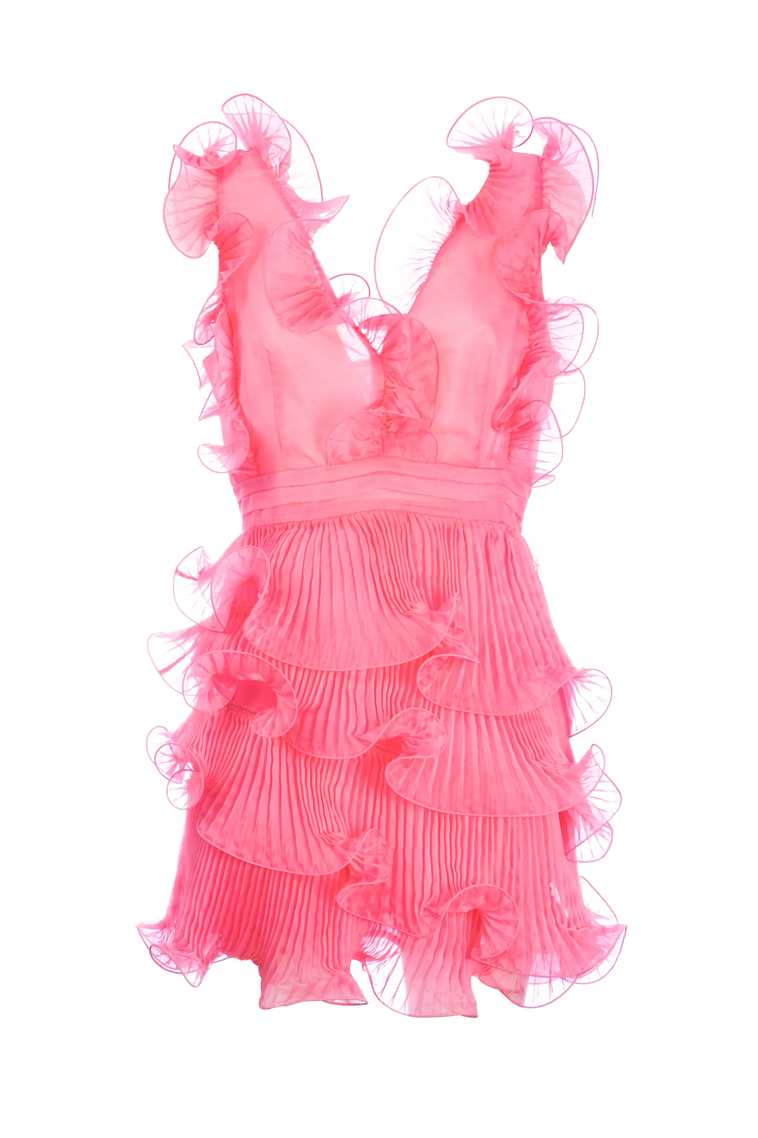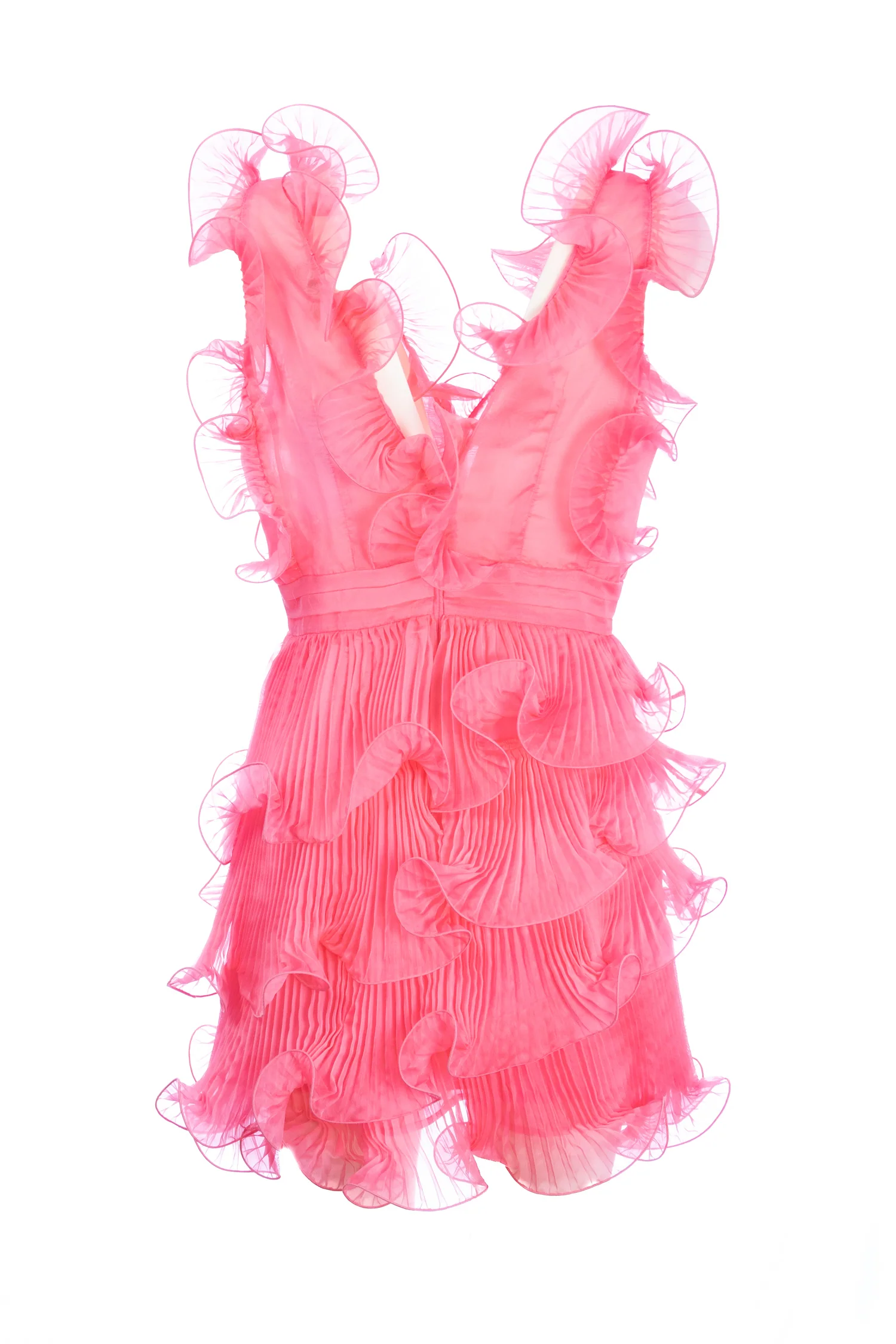 Abito corto “ANGEL” ibisco con balze plissettate