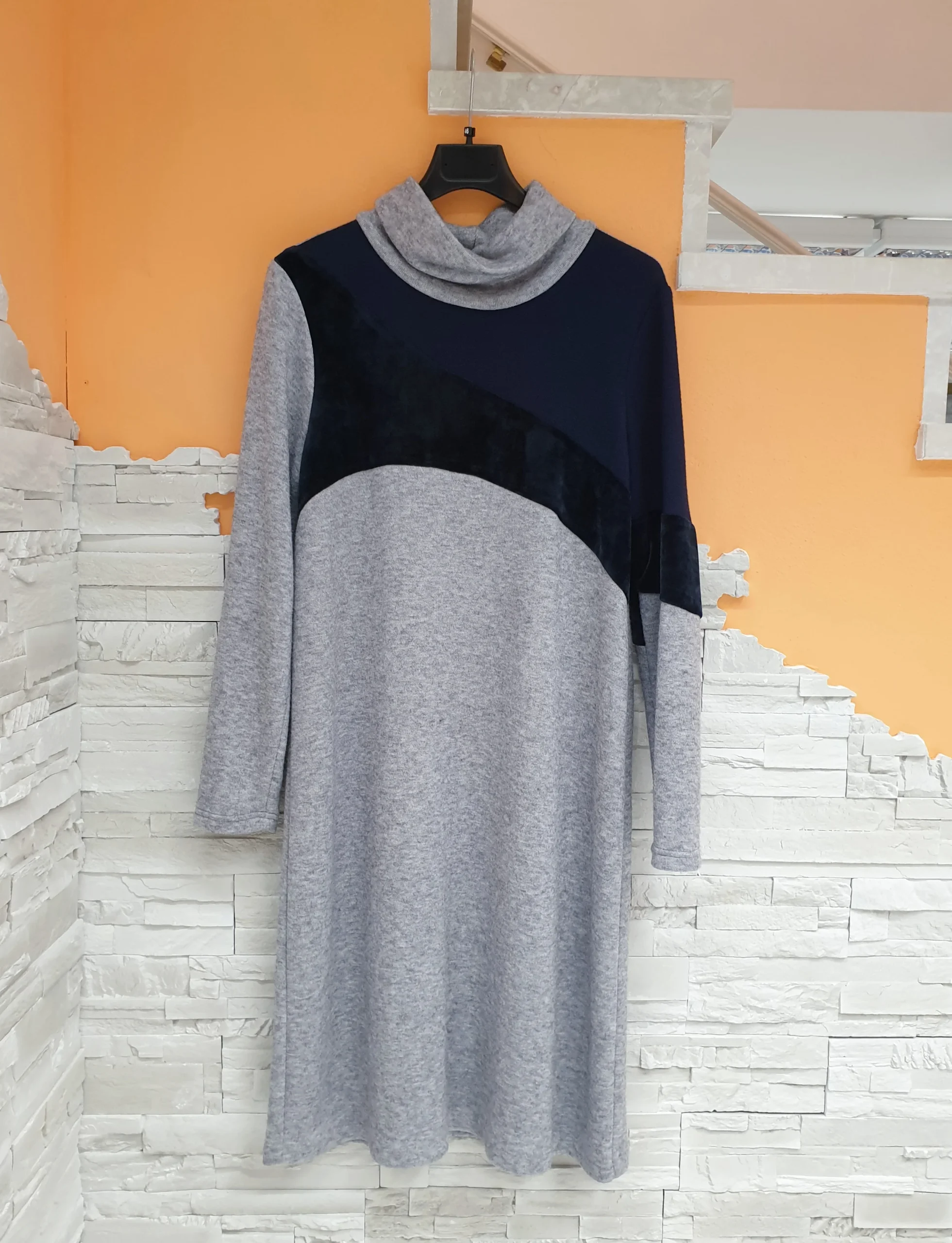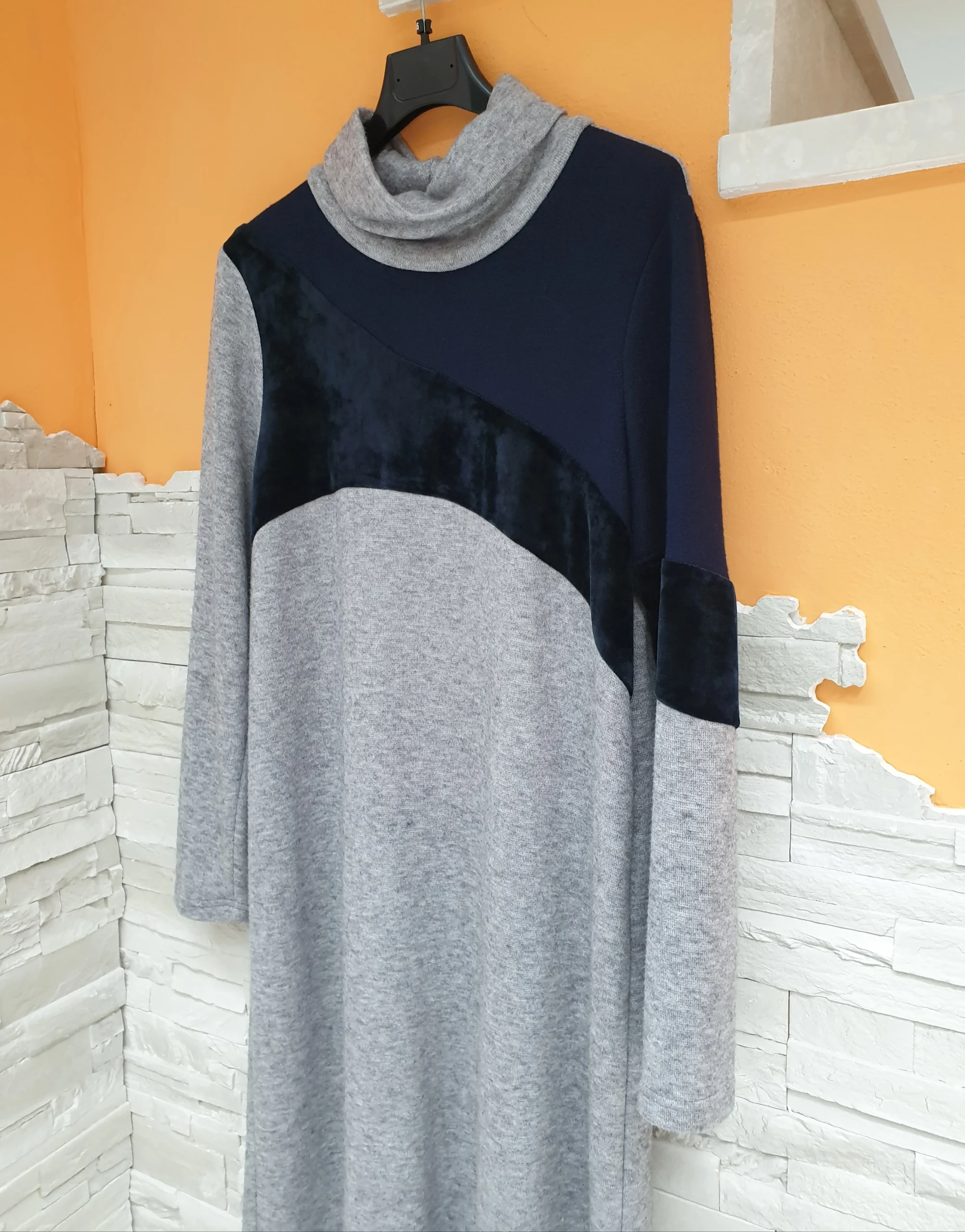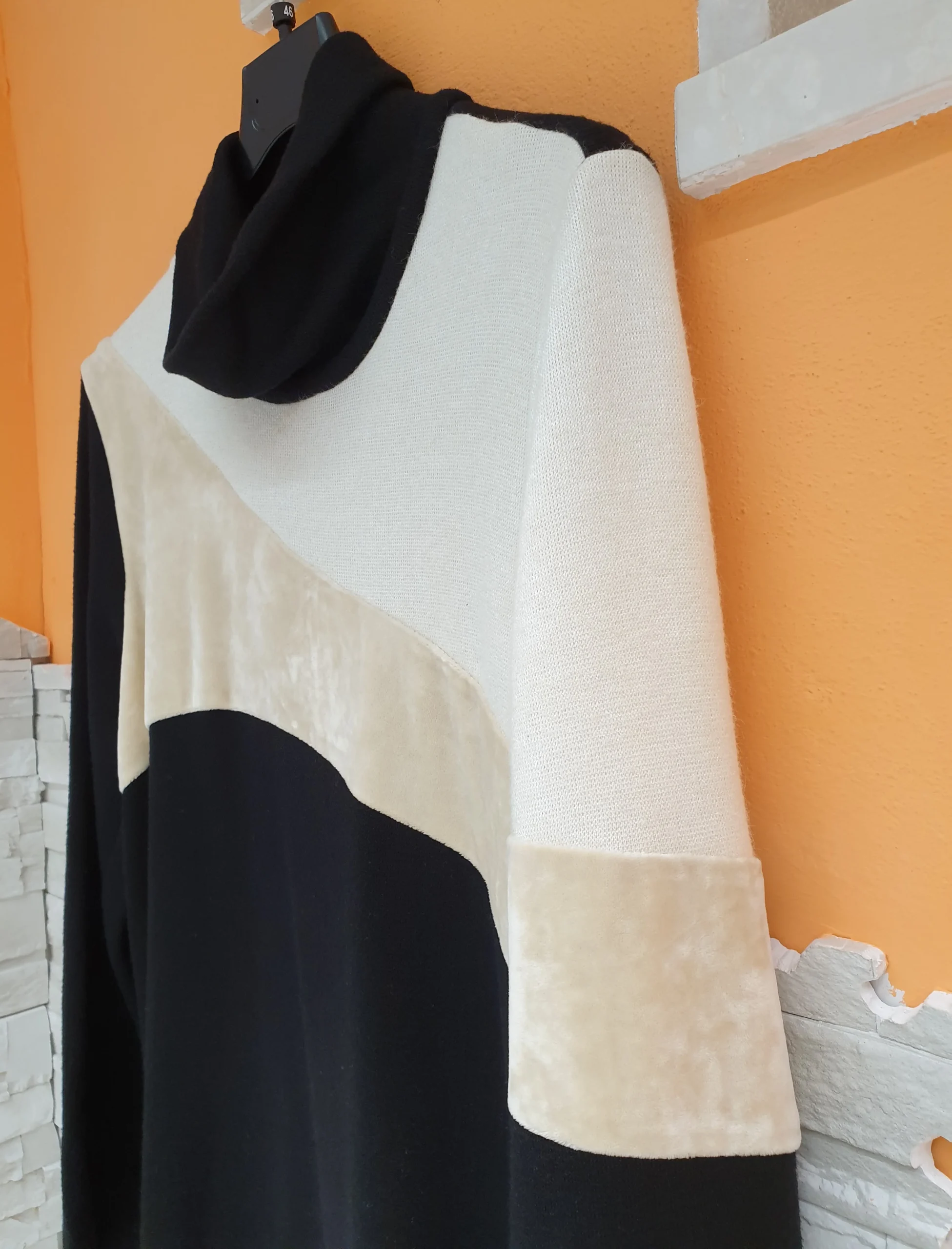 Abito di maglia collo a ciambella e inserto colore a contrasto con ciniglia.