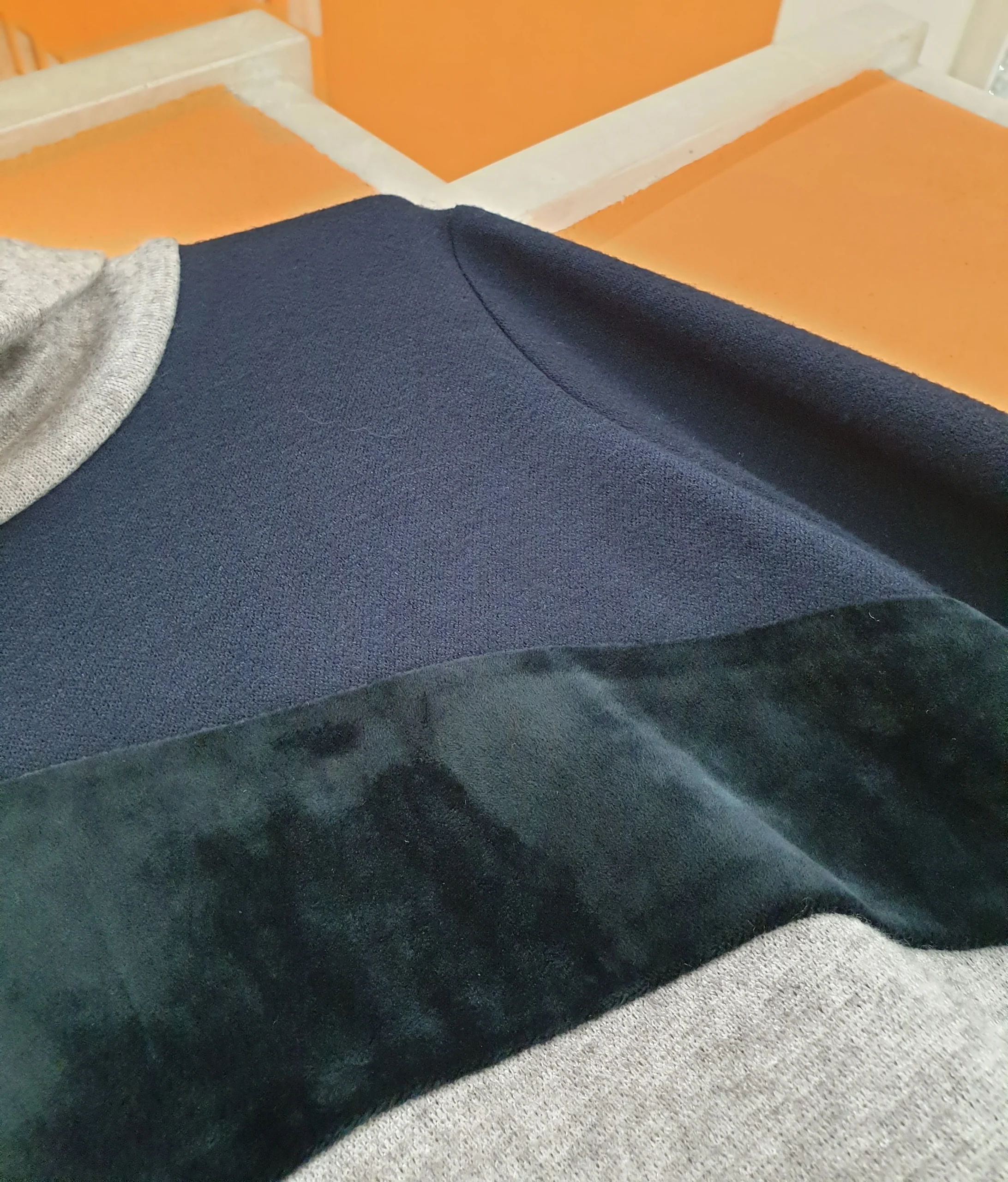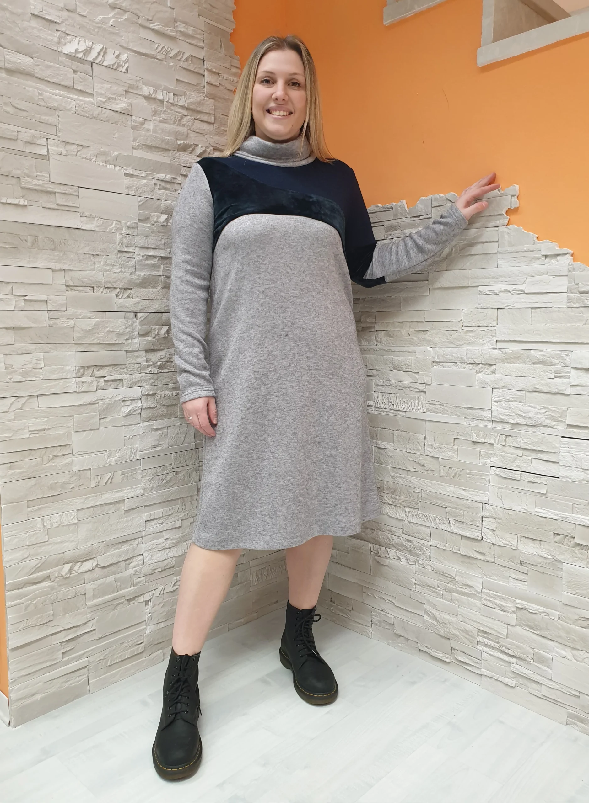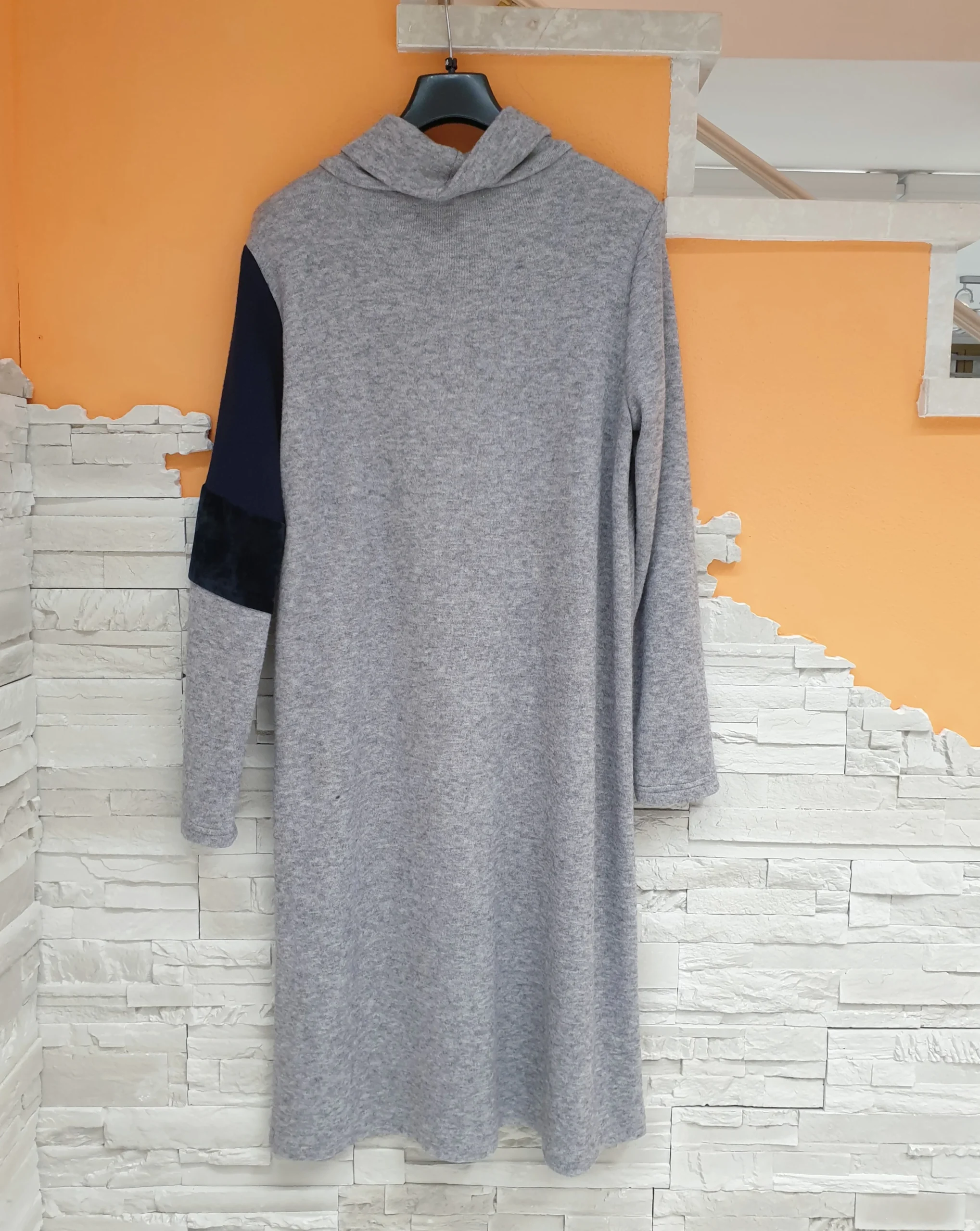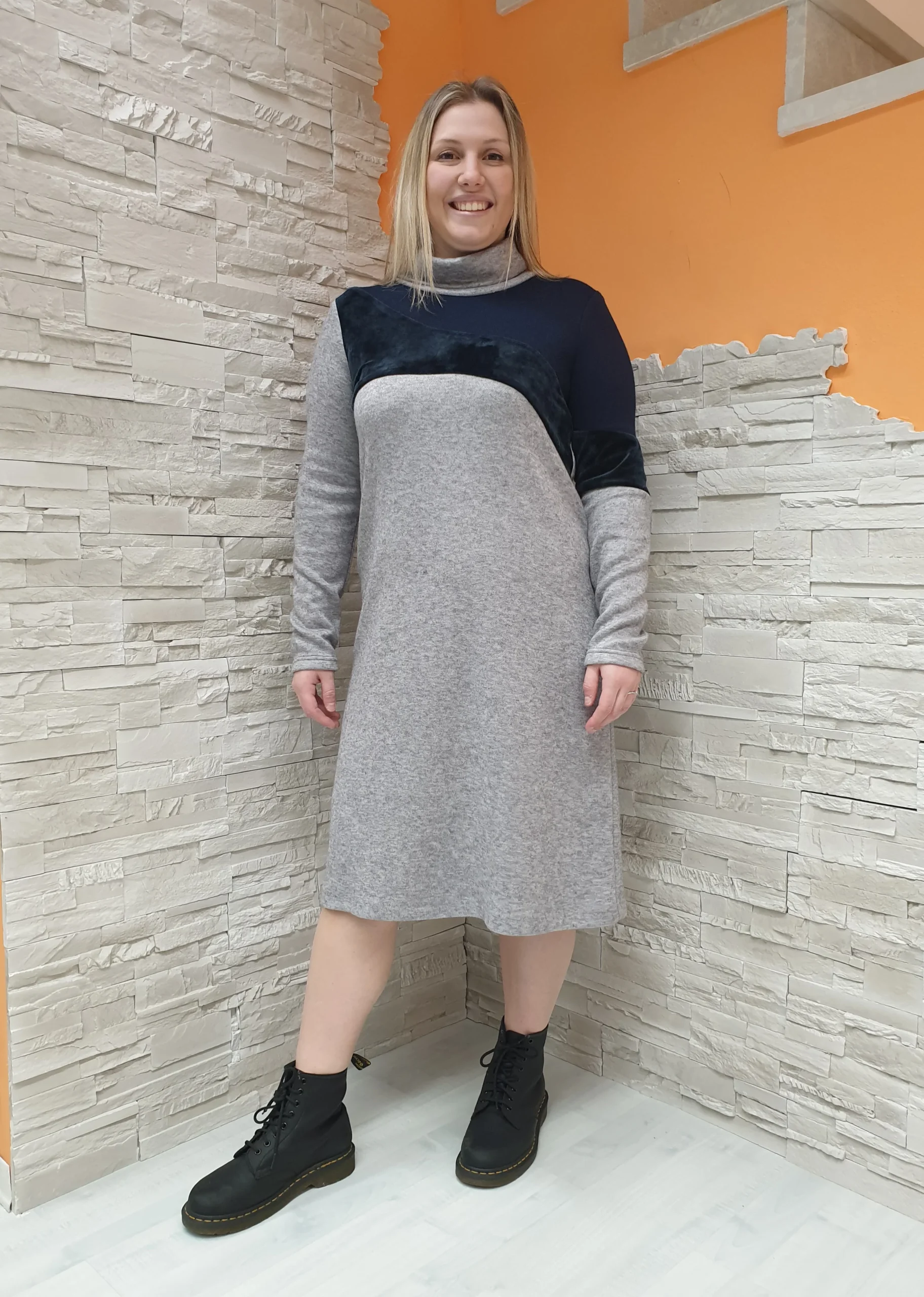 Abito di maglia collo a ciambella e inserto colore a contrasto con ciniglia.