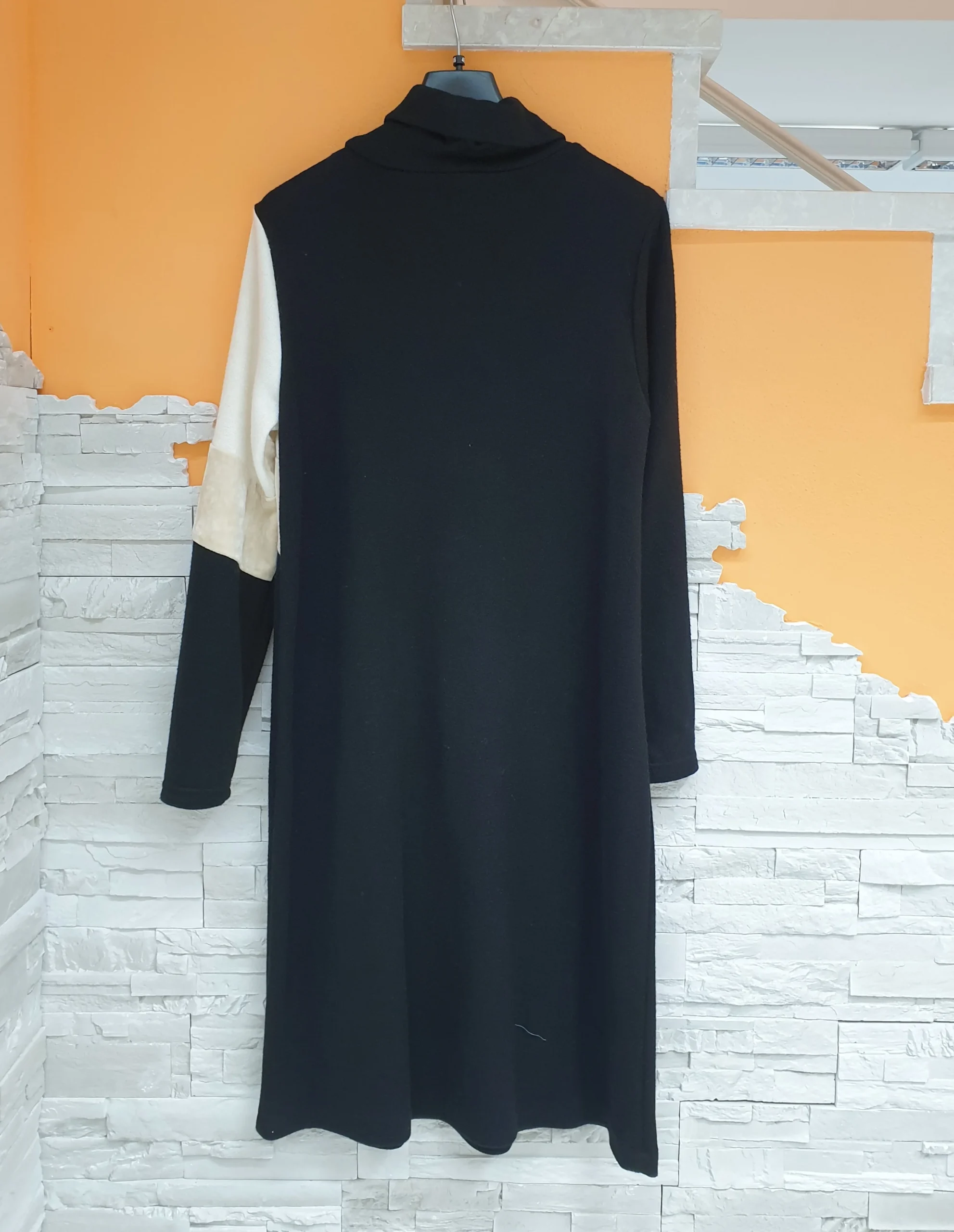Abito di maglia collo a ciambella e inserto colore a contrasto con ciniglia. >> LA MODELLA IN FOTO INDOSSA LA TG.L Composizione: 45% Viscosa 36% Poliestere 19% Nylon MADE IN ITALY
