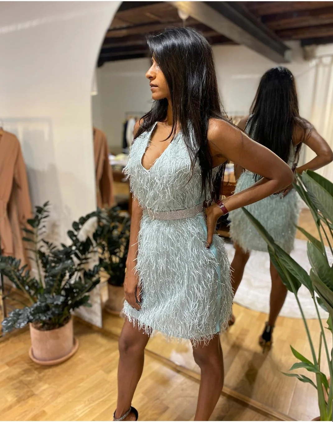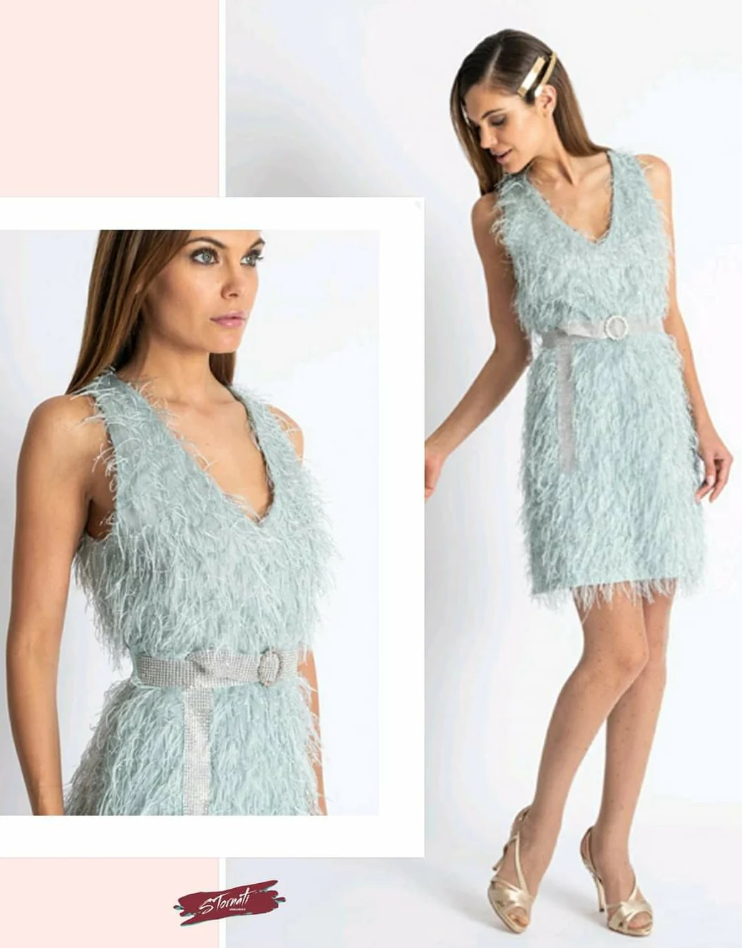 Abito piuma cintura gioiello