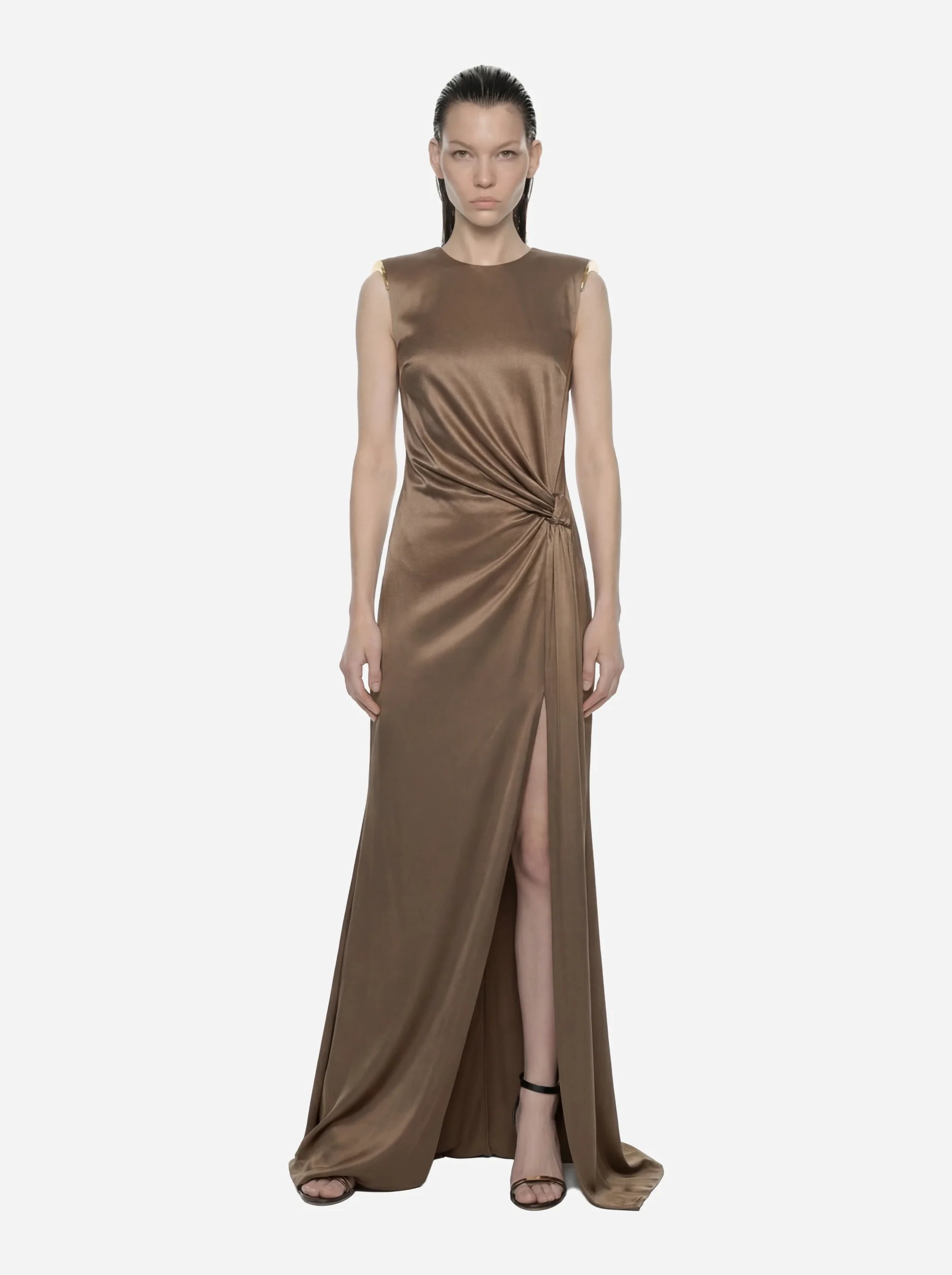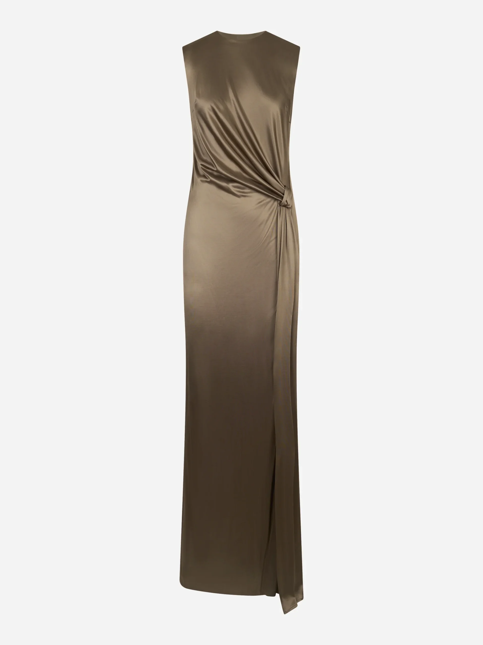 Dettagli prodotto Abito Red Carpet in jersey di viscosa lucida Abito lungo dall’effetto luminoso Design essenziale e sofisticato Drappeggio laterale effetto scultoreo Spacco per maggiore movimento Ideale per eventi e cerimonie Composizione: 100% viscosa
