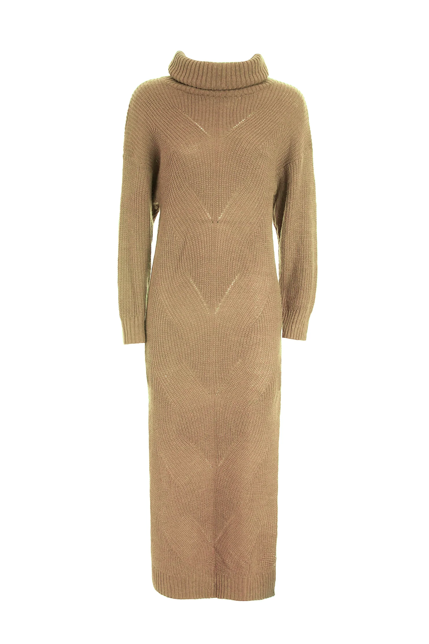 Abito regular lungo in maglia con trecce, collo alto, maniche lunghe, e con spacco laterale.