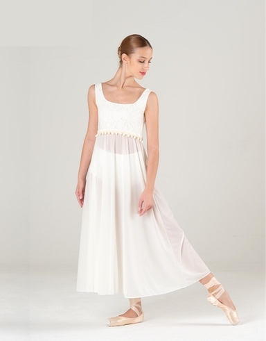 Bellissimo abito color avorio. corpetto in lycra e pizzo, gonna in tessuto leggero. Decoro in vita. Mutanda a vita alta in lycra avorio.