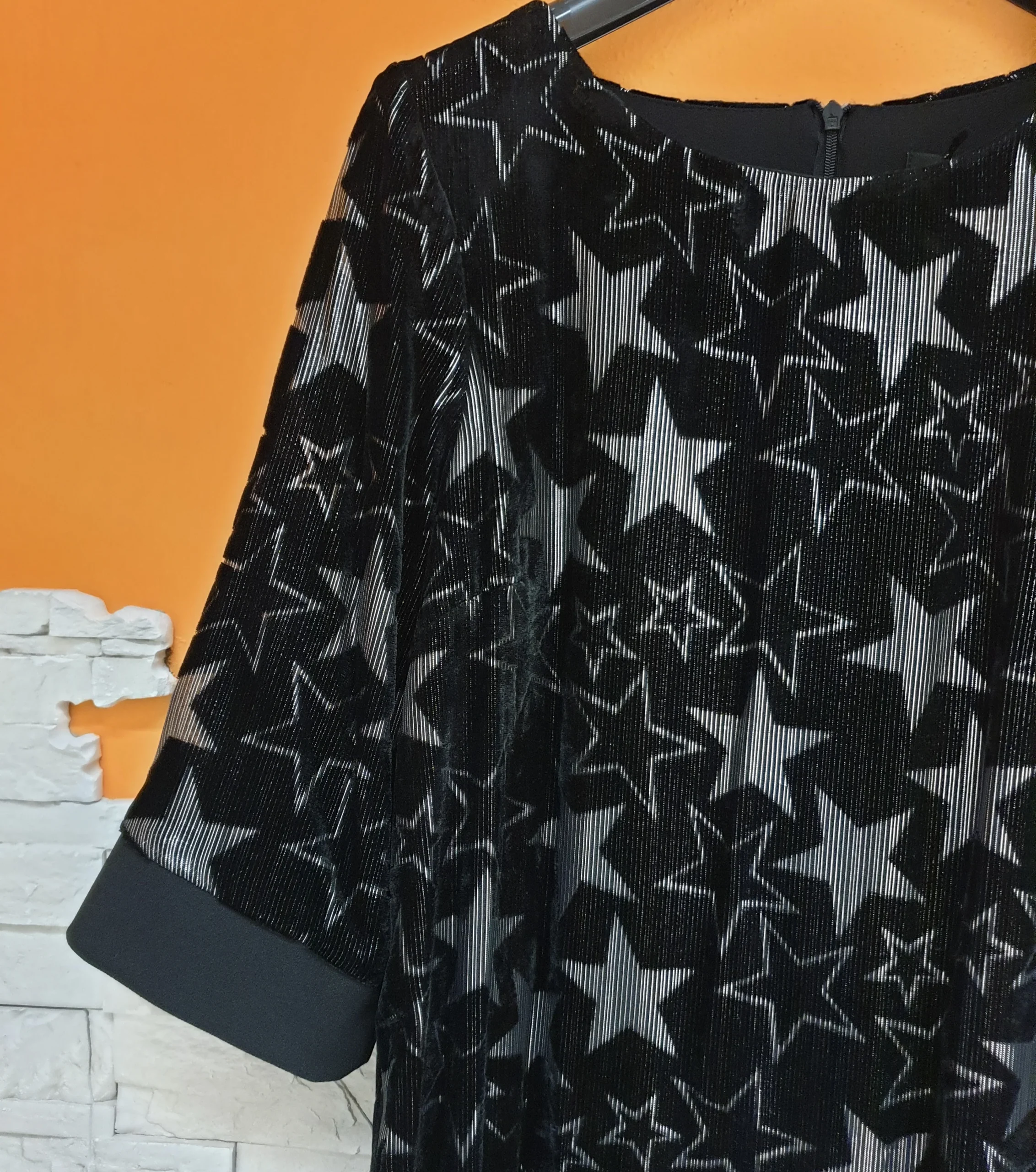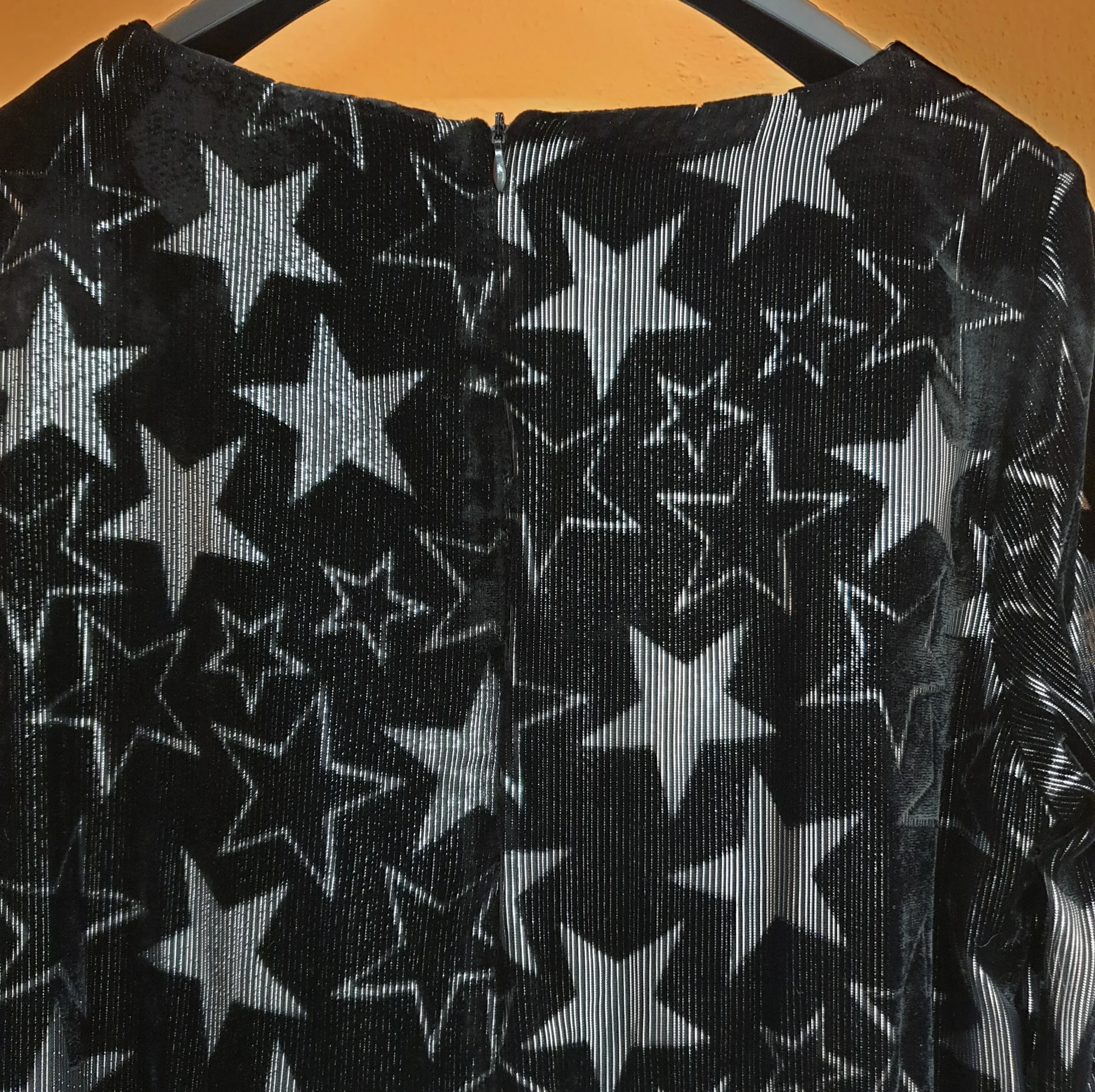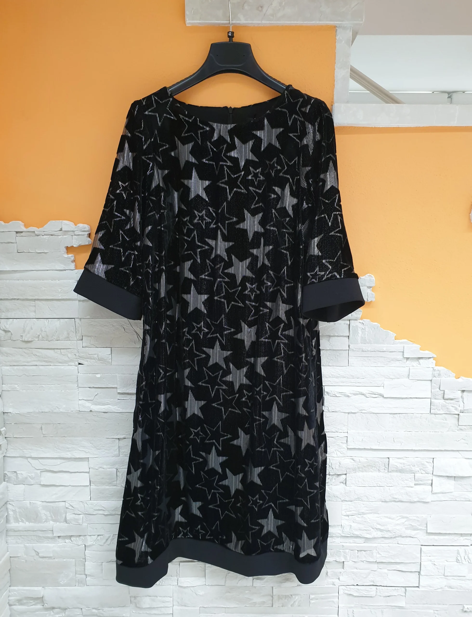 Abito velluto con stelle lurex silver. Manica al gomito e lunghezza sopra il ginocchio con inserti voile.