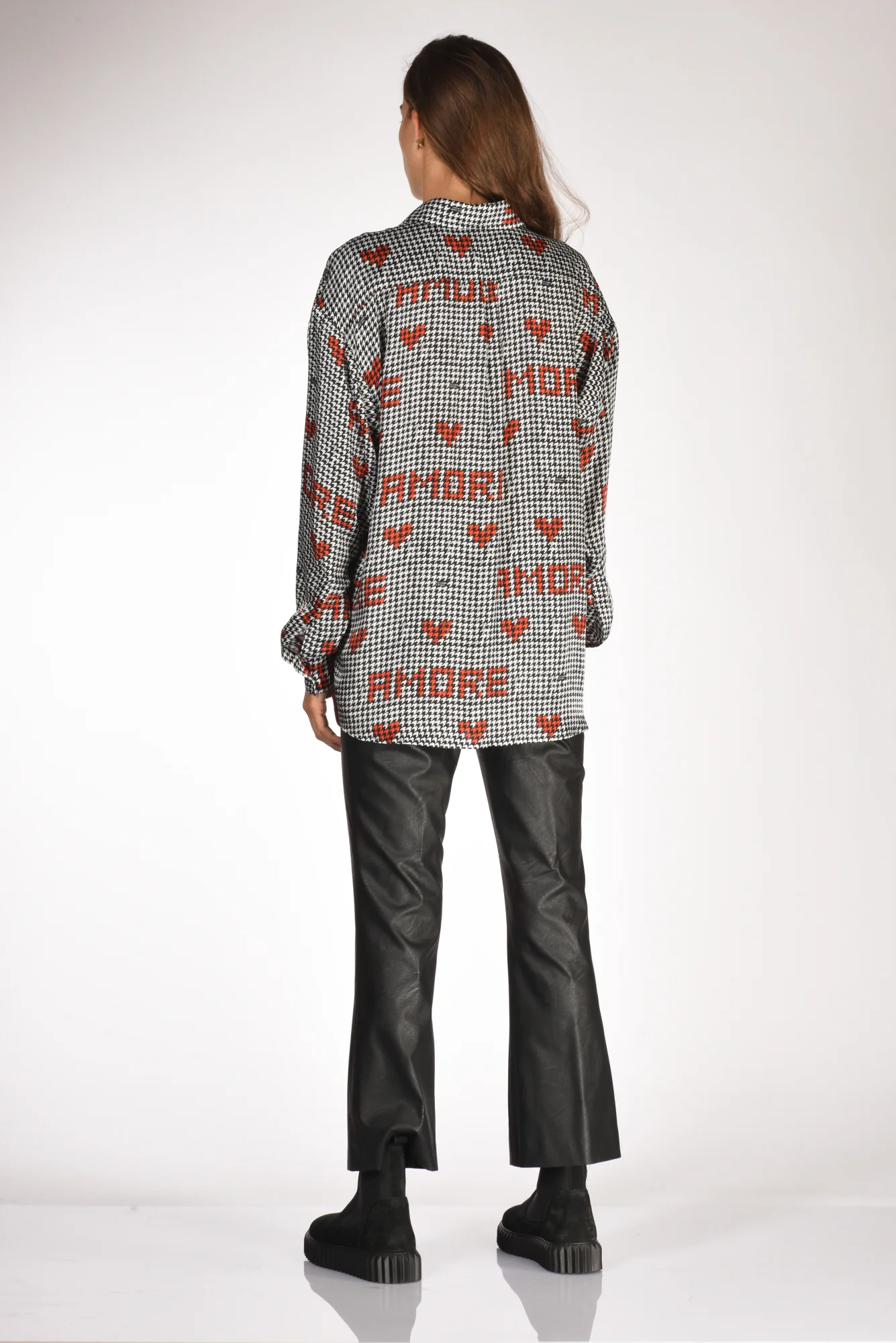 Camicia Stampata, Collo All’italiana, Maniche Lunghe, Spalla Scesa, Fondo Diritto, Chiusura Bottoni Ricoperti A Vista, Vestibilita’ Over, Made In Italy, Composizione 75 Viscosa 25 Seta
