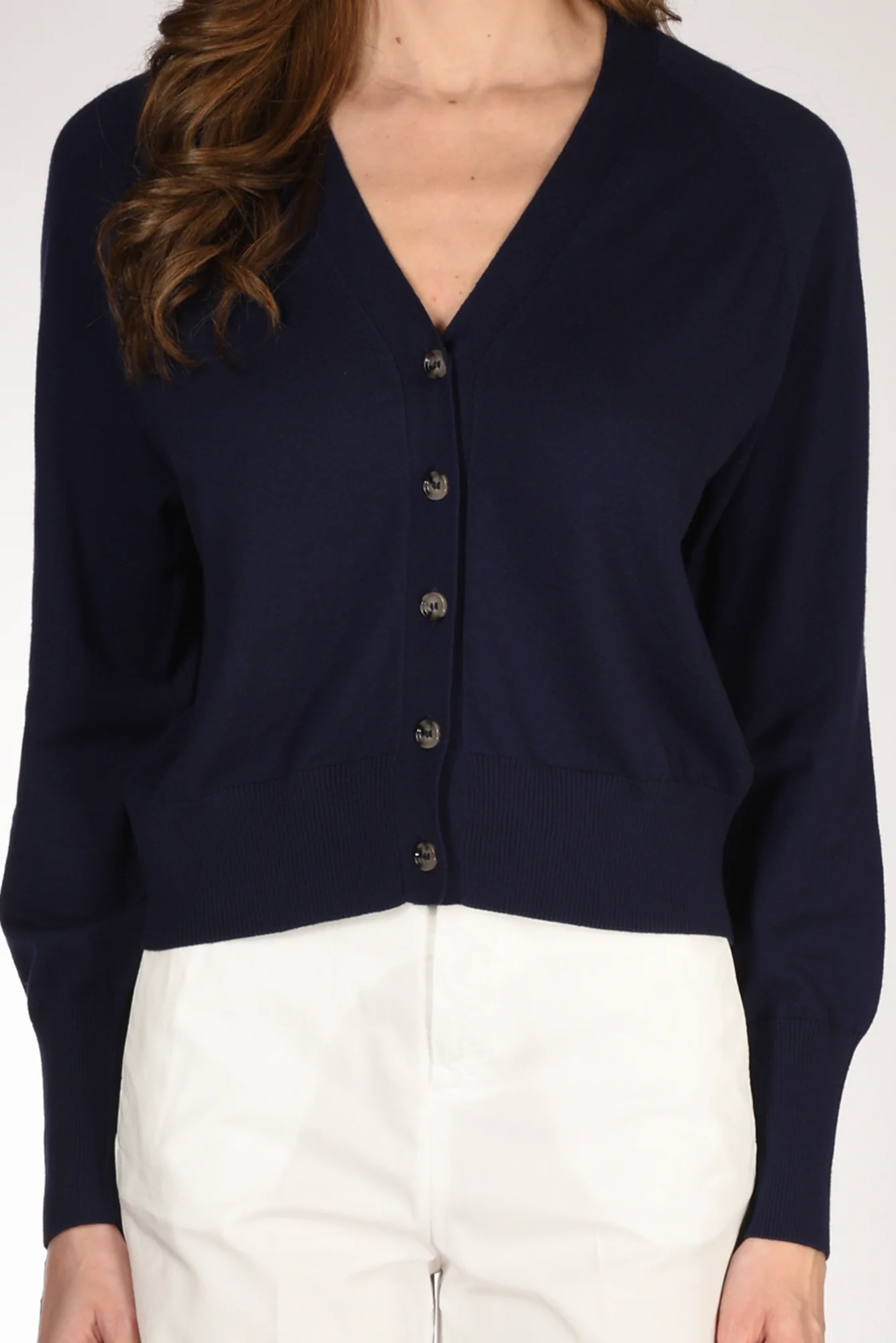 Cardigan Scollo A V, Manica Lunga, Fondo E Polsi Elastici A Costine, Chiusura Centrale Con Bottoni A Vista, Nervatura Centrale Posteriore, Vestibilita’ Regular, Made In Nepal, Composizione 70 Cotone, 20 Seta, 10 Cachemire