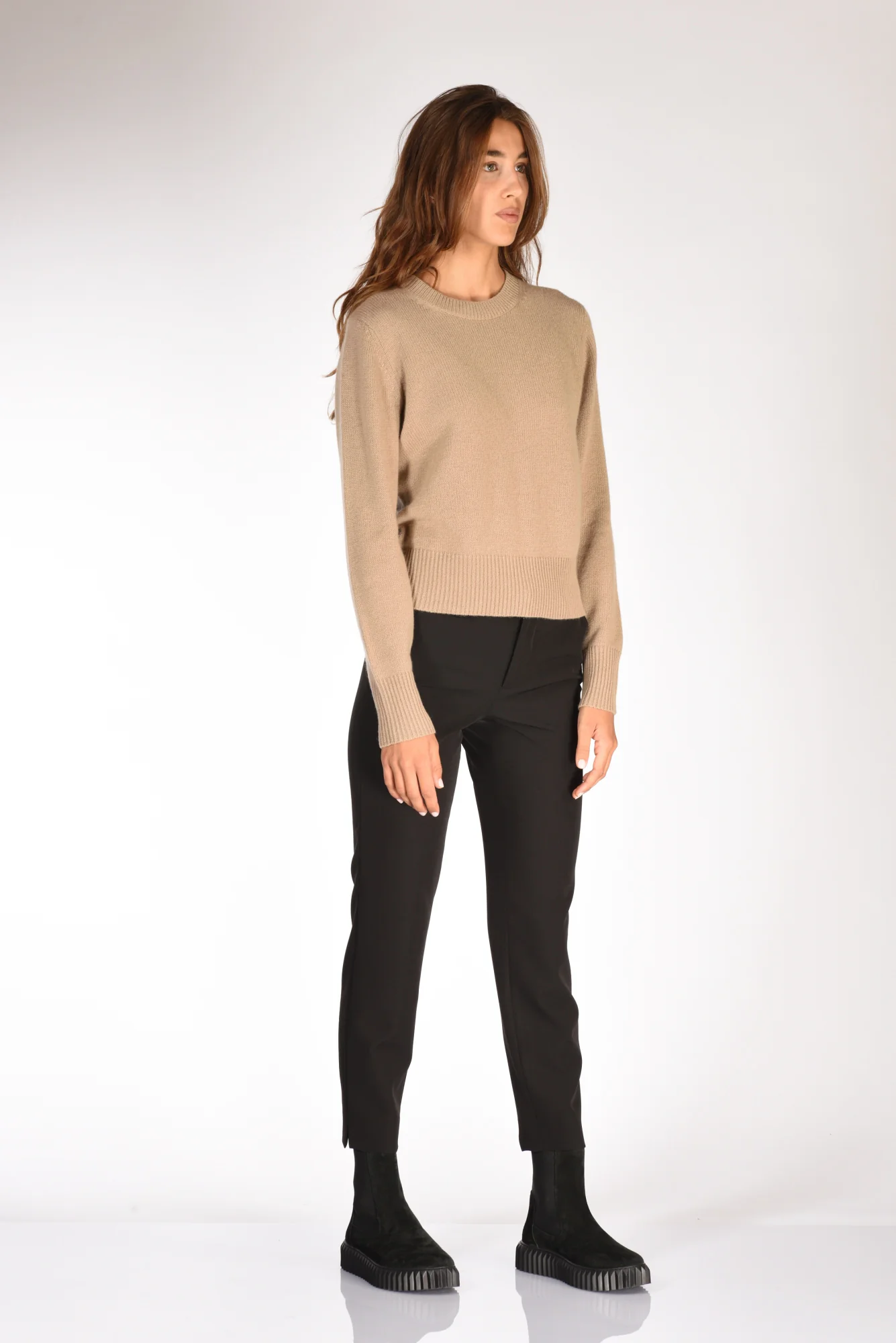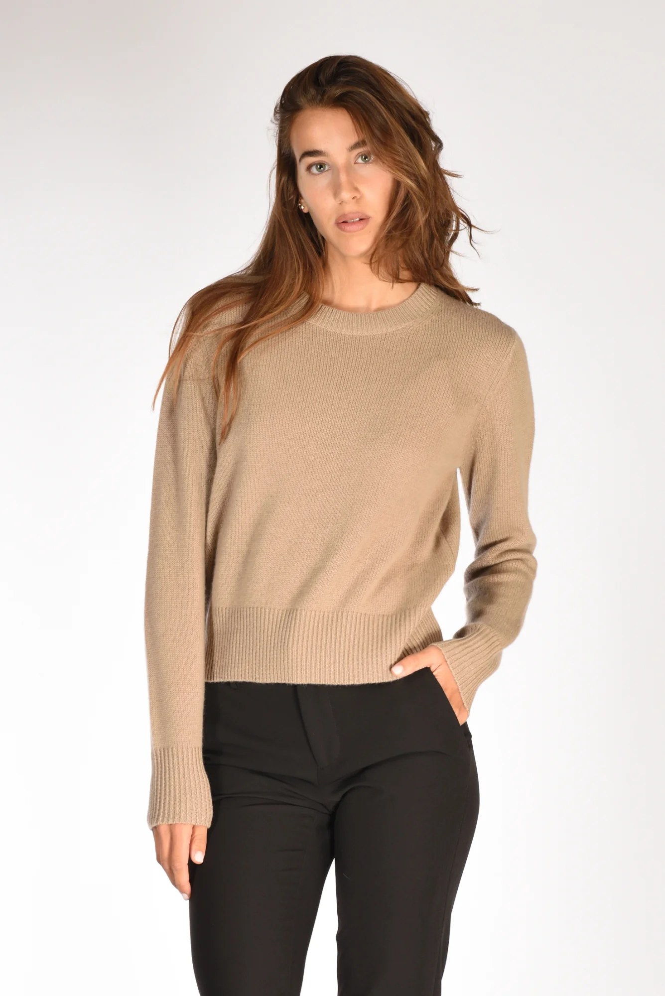 Maglia Girocollo, Polsi, Bordo E Scollo Lavorati A Coste, Vestibilita’ Regular, Composizione 100 Cachemire, Made In China