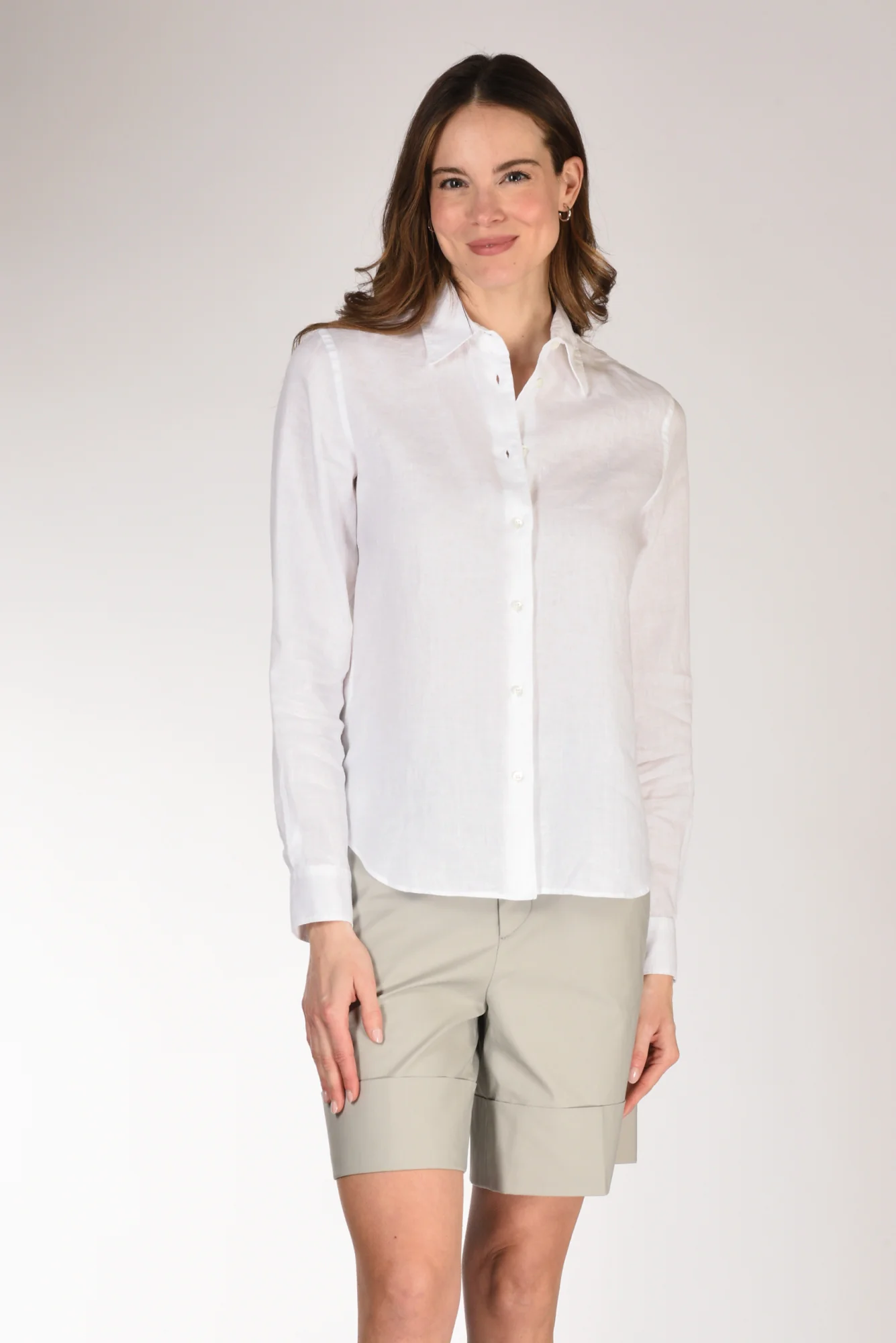 Camicia Maniche Lunghe, Orlo Stondato, Chiusa Da Bottoni A Vista, Vestibilita’ Regular, Composizione 100 Lino, Made In Romania