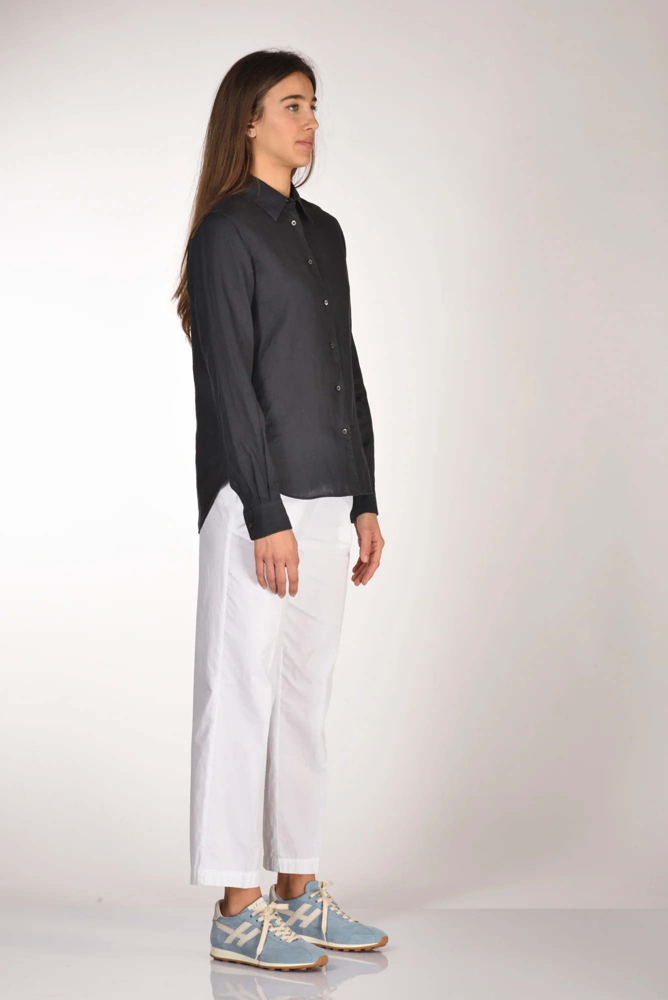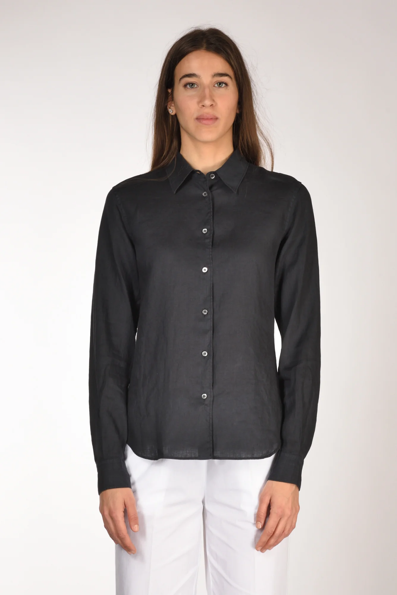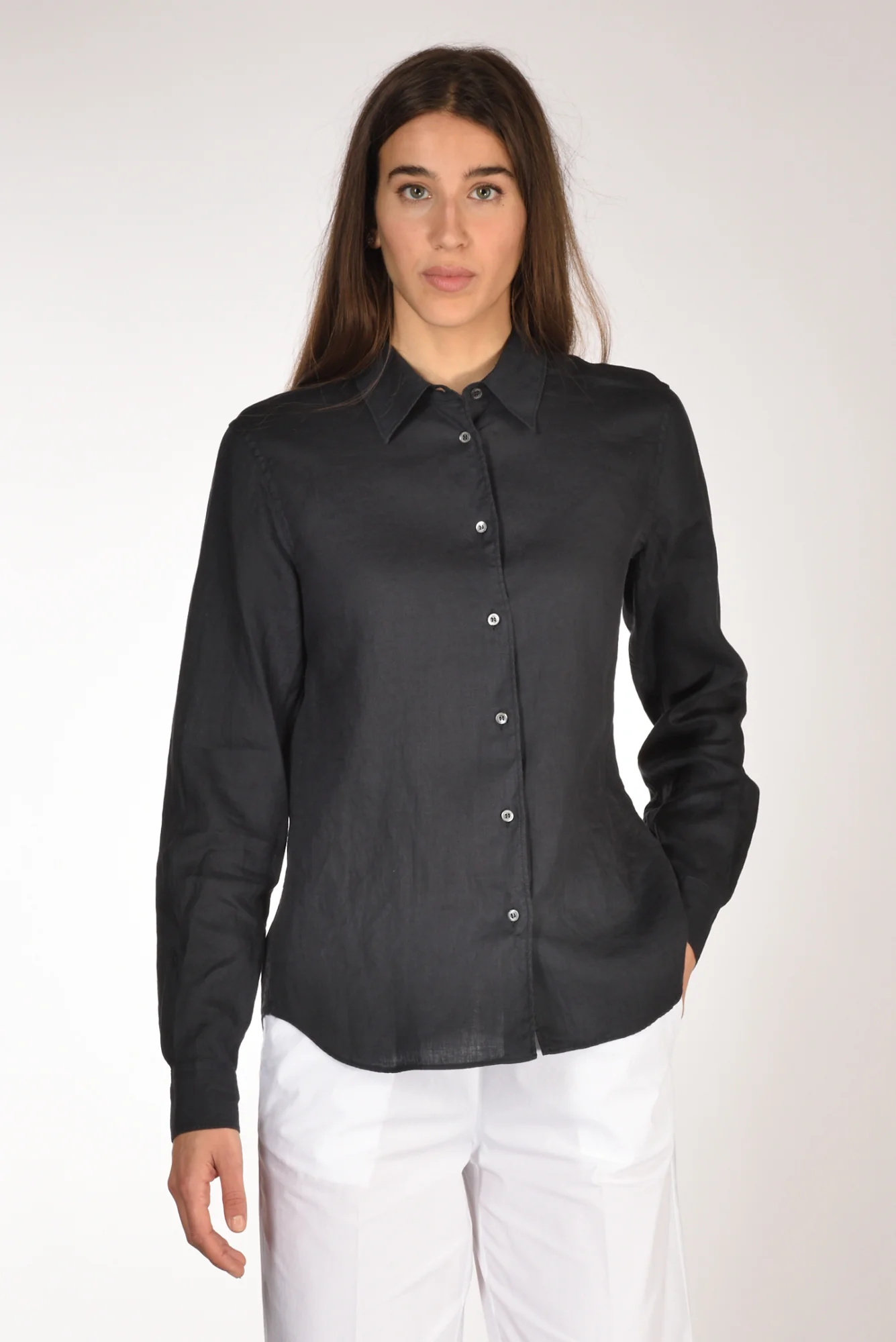 Camicia Realizzata In Lino, Manica Lunga Con Polso Stondato Chiuso Da Bottone, Chiusura Bottoni A Vista, Fondo Stondato, Vestibilita’ Regular, Made In Romania, Composizione 100 Lino