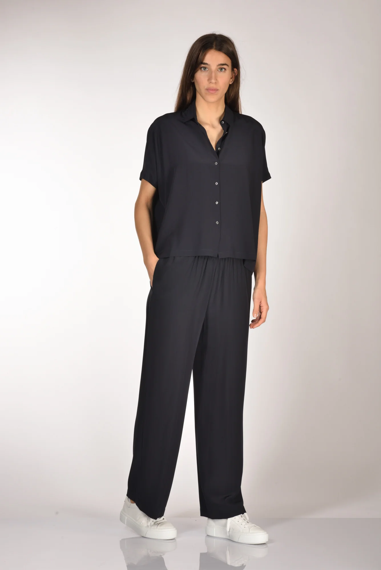 Pantalone Gamba Larga, Vita Elastica, Tasca Inserita, Vestibilita’ Morbida, Made In Cina, Composizione 100 Seta