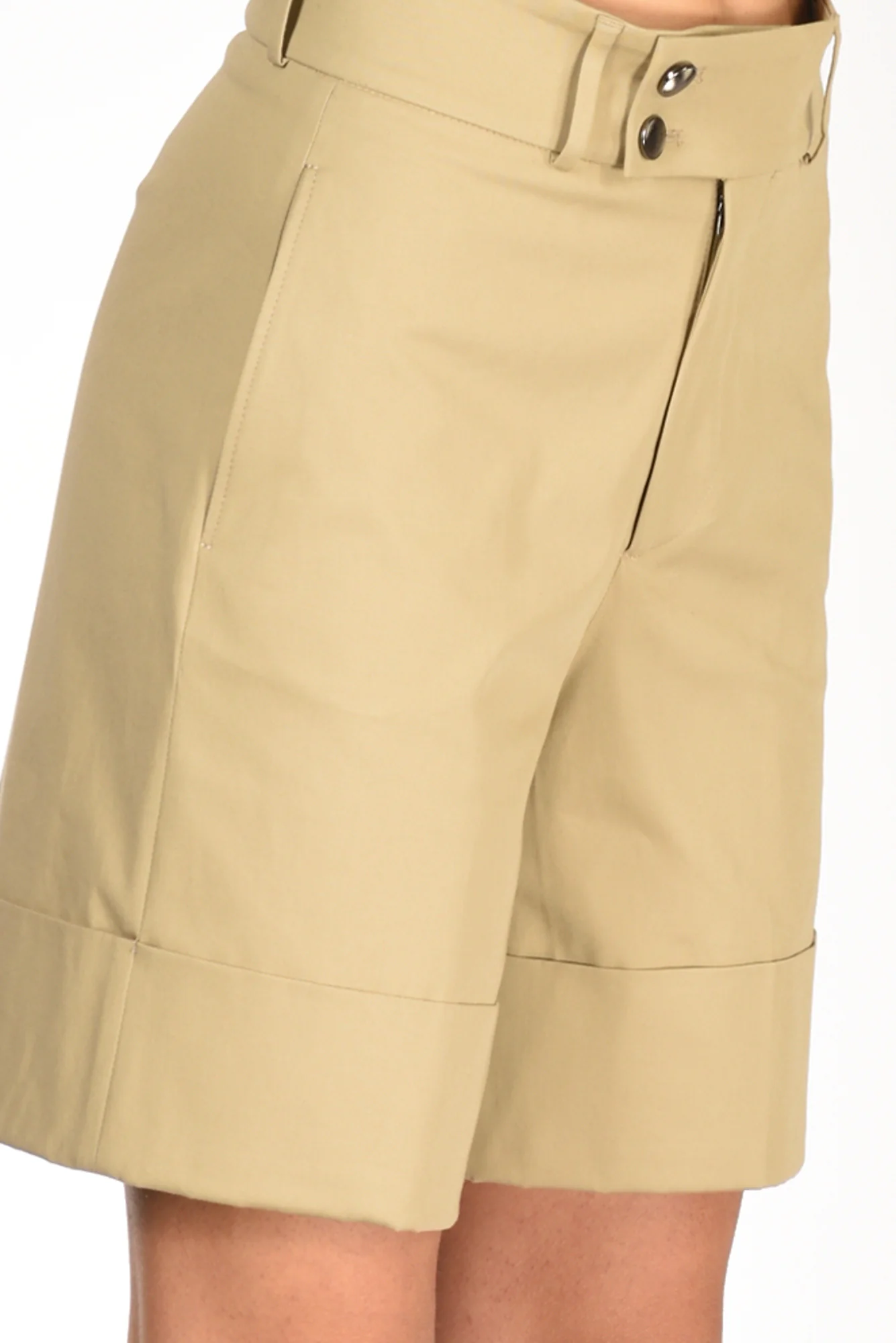 Bermuda A Vita Alta, Passanti In Vita, Tasche Laterali Inserite, Chiuso Da Zip Nascosta E Bottoni Di Metallo A Vista, Gamba Larga, Risvolto H Cm 9, Vestibilita’ Regular, Composizione 96 Cotone, 4 Elastan, Made In Italy