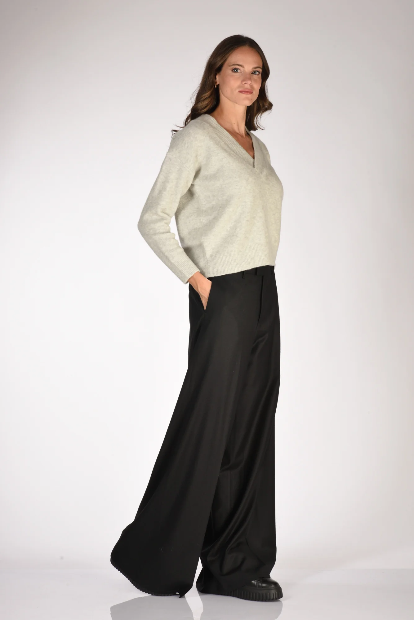 Pantalone A Palazzo, Vita Alta Con Passanti, Chiusura Zip, Gancio Metallico E Bottone Nascosti, Tasche Alla Francese, Vestibilita’ Regular, Made In Italy, Composizione 89 Lana Vergine 10 Cachemire