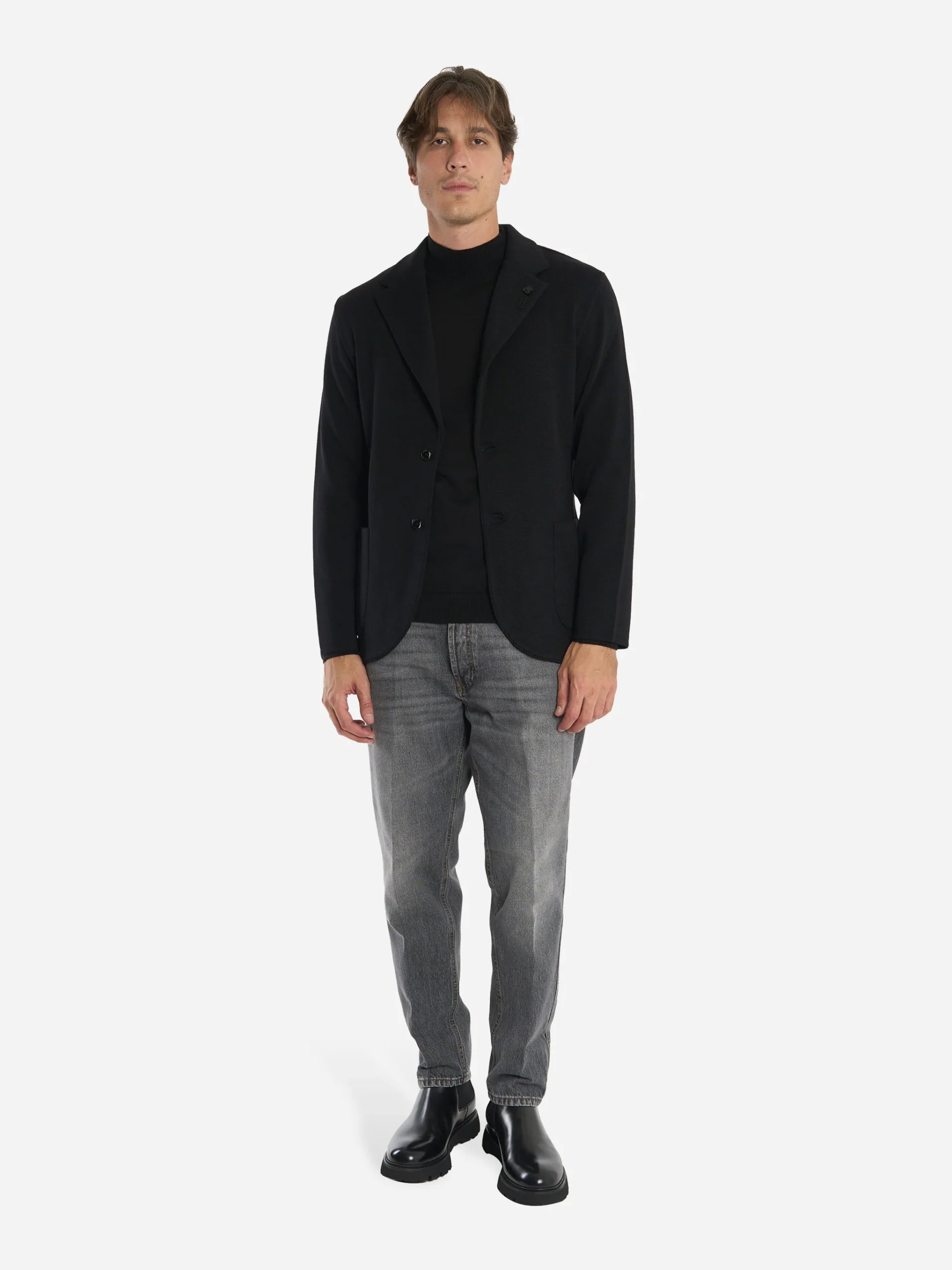ITEM INFO Blazer in maglia nero Revers classici con linea sartoriale Chiusura frontale a due bottoni Due tasche frontali applicate Polsini e orlo con finitura pulita Struttura leggera e confortevole Vestibilità regolare Composizione: 100% Lana Vergine Made in Italy TAGLIA E VESTIBILITÀ ▾ Model wears size L Model Height 187 cm Bust 100 cm Waist […]