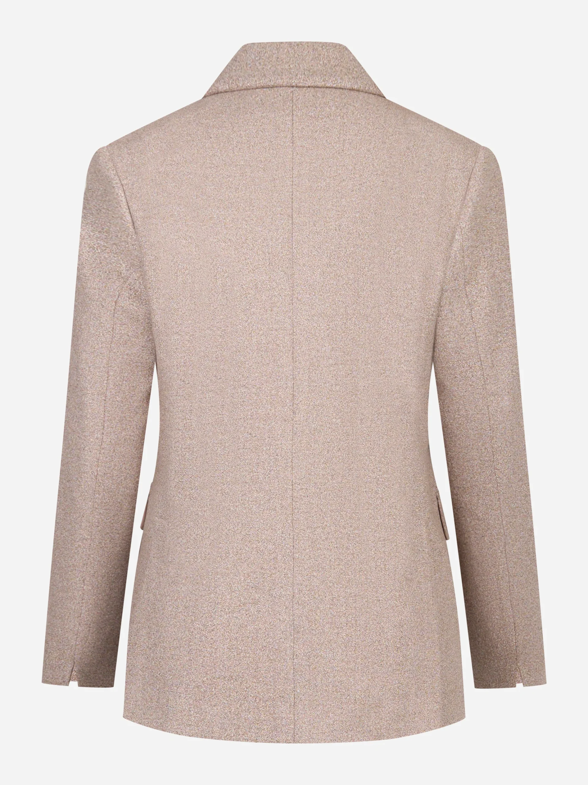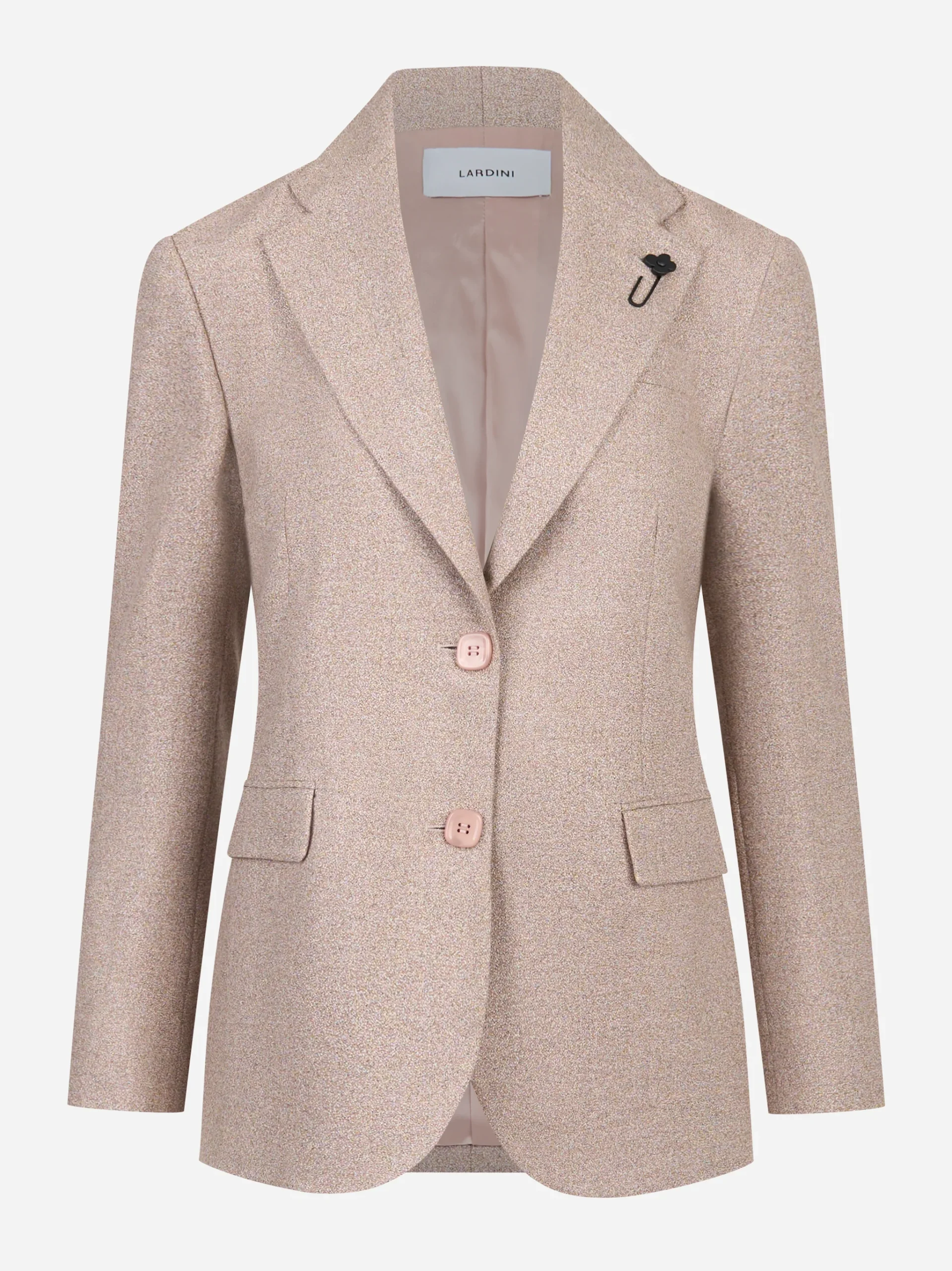 ITEM INFO Blazer monopetto rosa in lana e viscosa Revers classici a lancia Chiusura monopetto con bottoni Tasche laterali con pattina o a filetto Linea sartoriale Struttura elegante e contemporanea Capo versatile adatto a ogni occasione Composizione: 03% elastan, 42% viscosa, 55% lana vergine Made in Italy