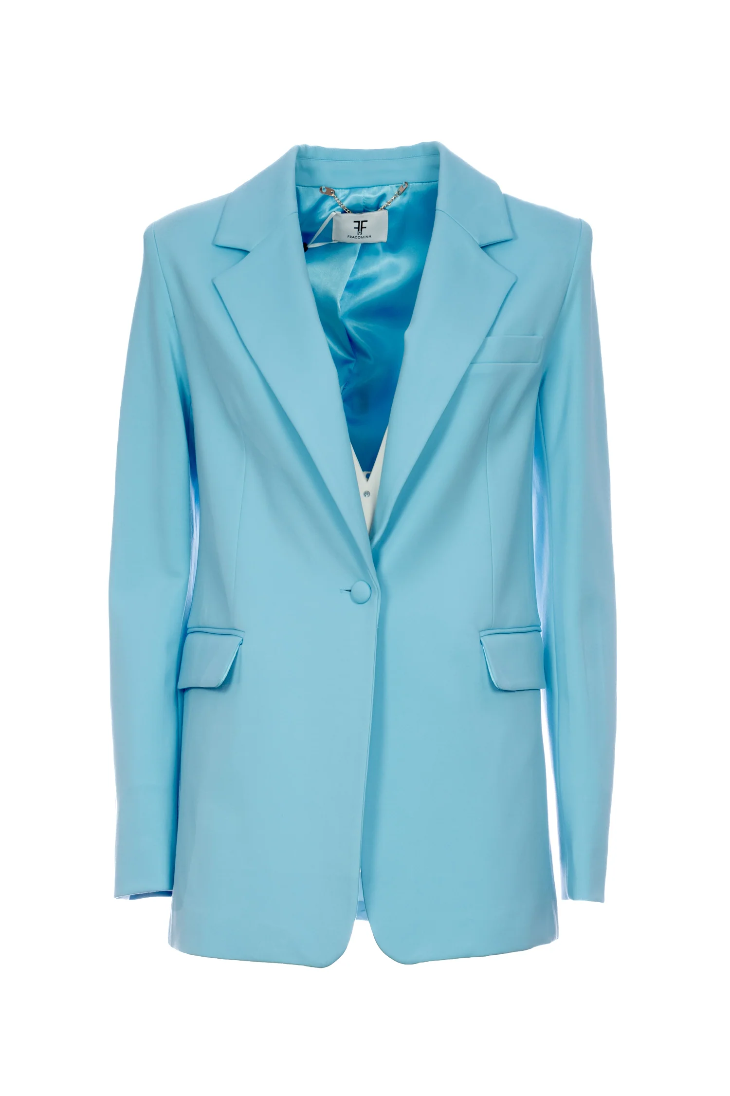 Blazer regular lungo monopetto azzurro in tessuto tecnico