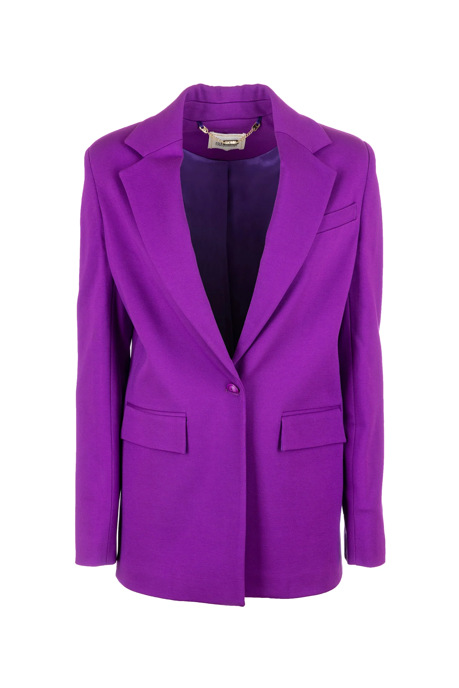 Blazer regular lungo monopetto in punto milano, revers classico, bottone centrale per apertura, tasche laterali, e con maniche lunghe.