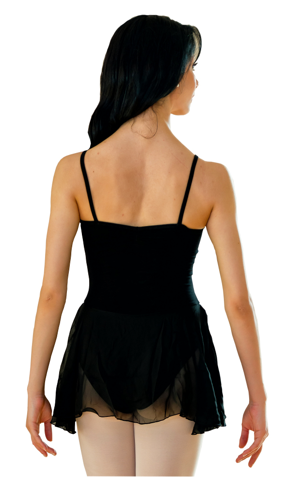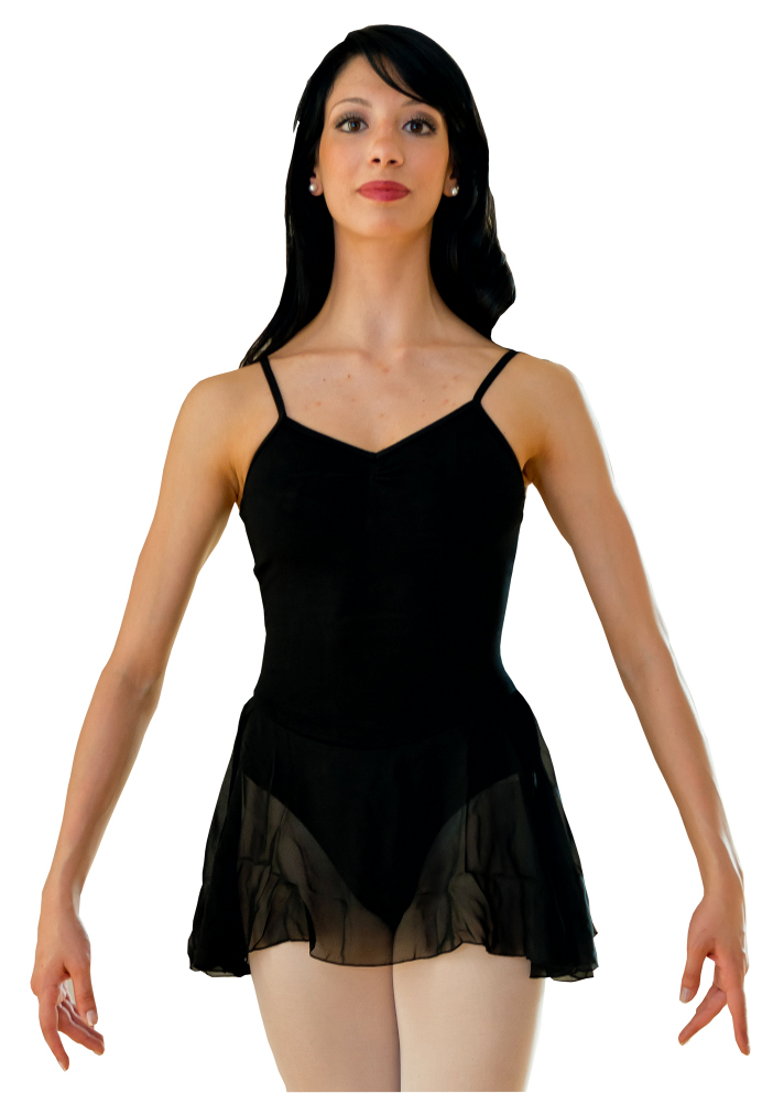 Body in cotone a spallina con arriccio, con gonnellino in georgette. Taglie adulta.