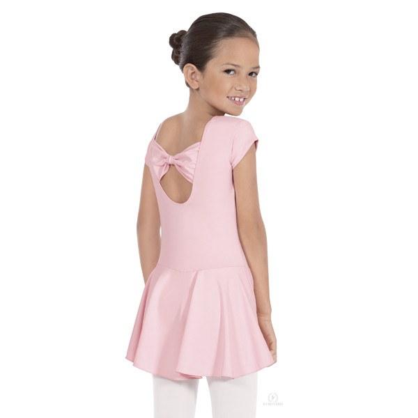 Body manichetta in microfibra con ampio scollo sulla schiena decorato da fiocco, gonnellino in microfibra. Ideale come divisa per le più piccole o come capo per un’esibizione.
