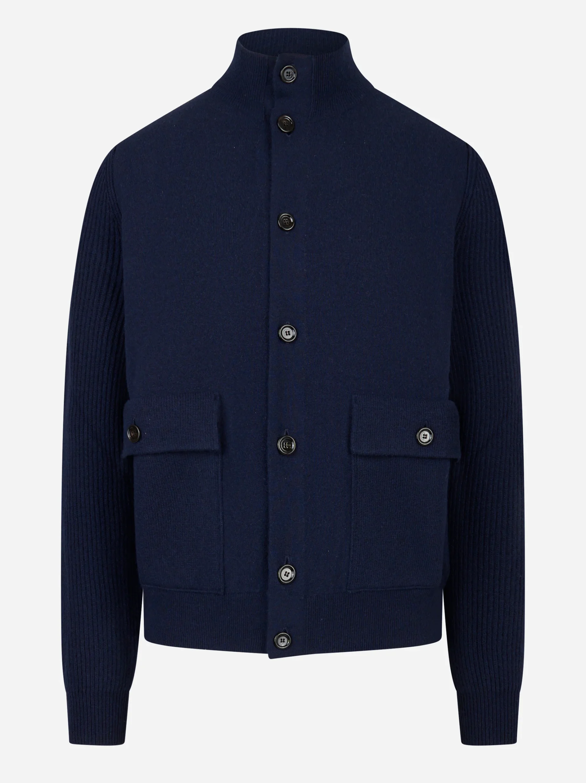 Bomber con bottoni in lana double blu