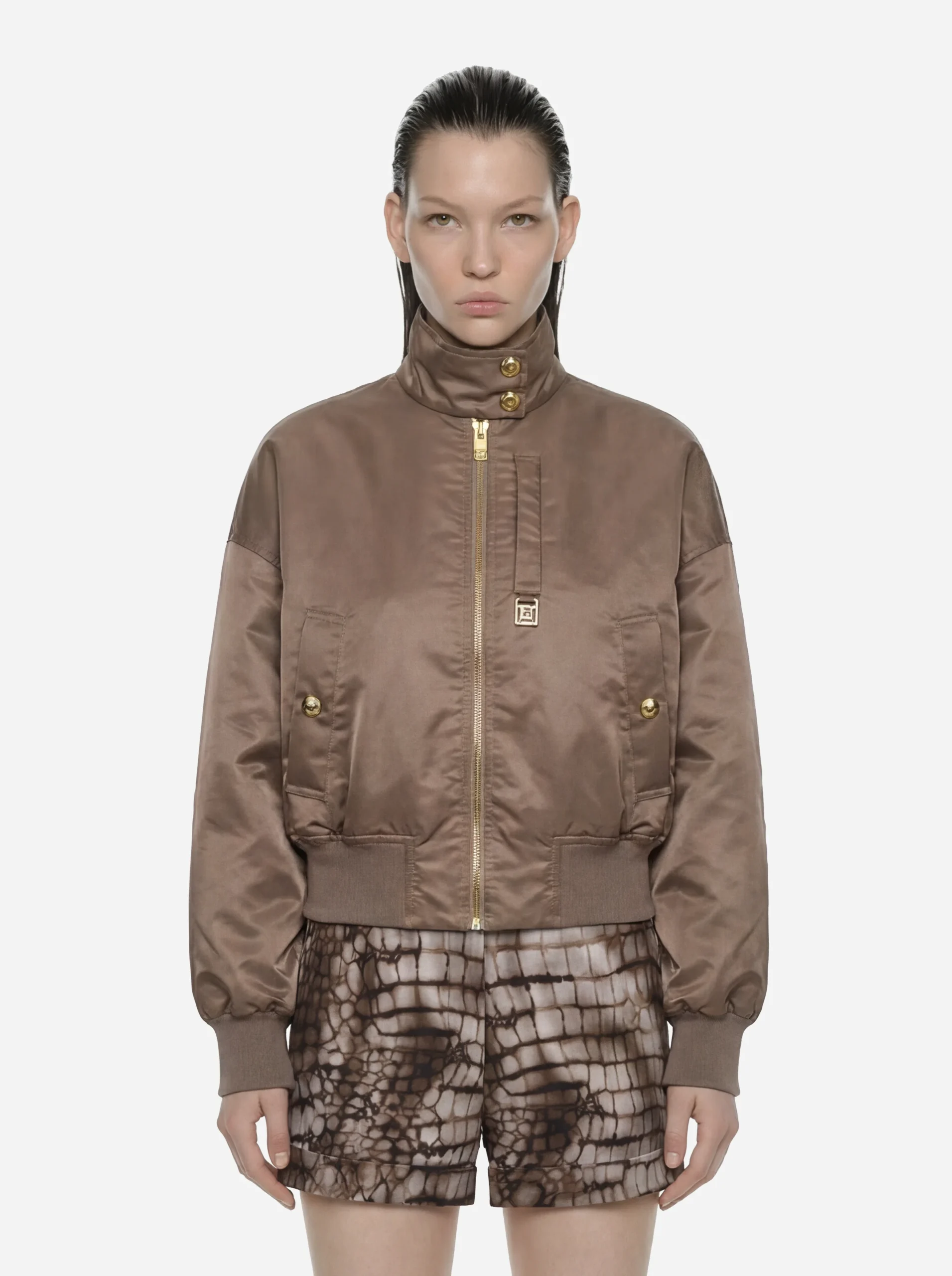Dettagli prodotto Bomber in nylon Linea moderna e pulita Chiusura frontale con zip Collo e polsini rifiniti Tasche laterali Perfetto per look casual-chic Composizione: 100% poliammide