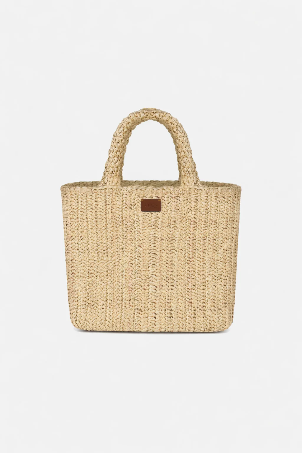 Manici rinforzati in rafia ed etichetta con logo in similpelle