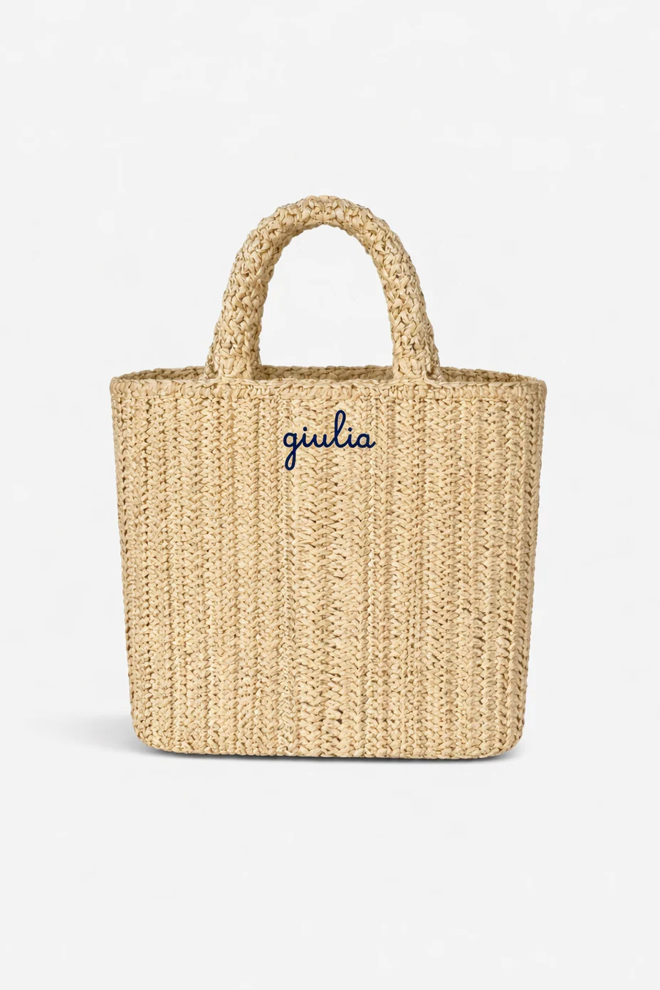 Interamente realizzata in rafia di carta lavorata a mano.