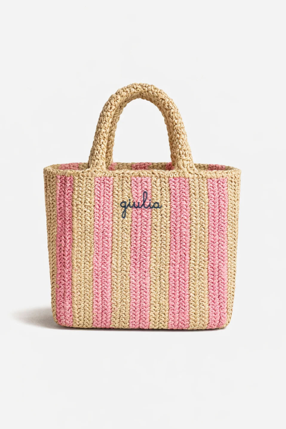 Borsa a Mano in Rafia – Righe rosa