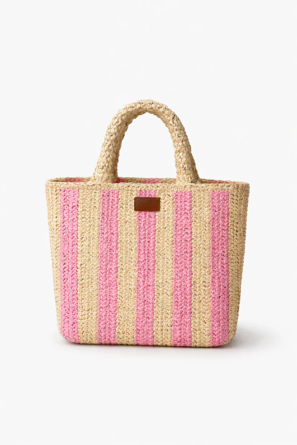 Realizzata in rafia di carta lavorata a mano, la Rafia Handbag a righe ha il fascino estivo che ti porta da Portofino a Saint Tropez. Interamente realizzata in rafia di carta lavorata a mano. Manici rinforzati in rafia ed etichetta con logo in similpelle