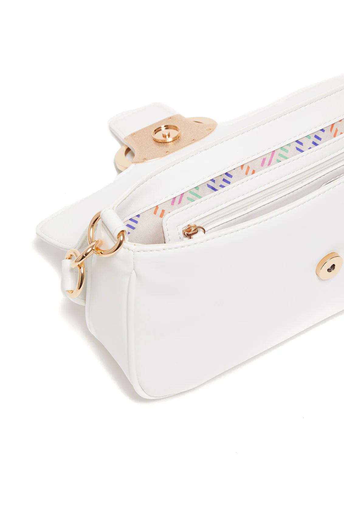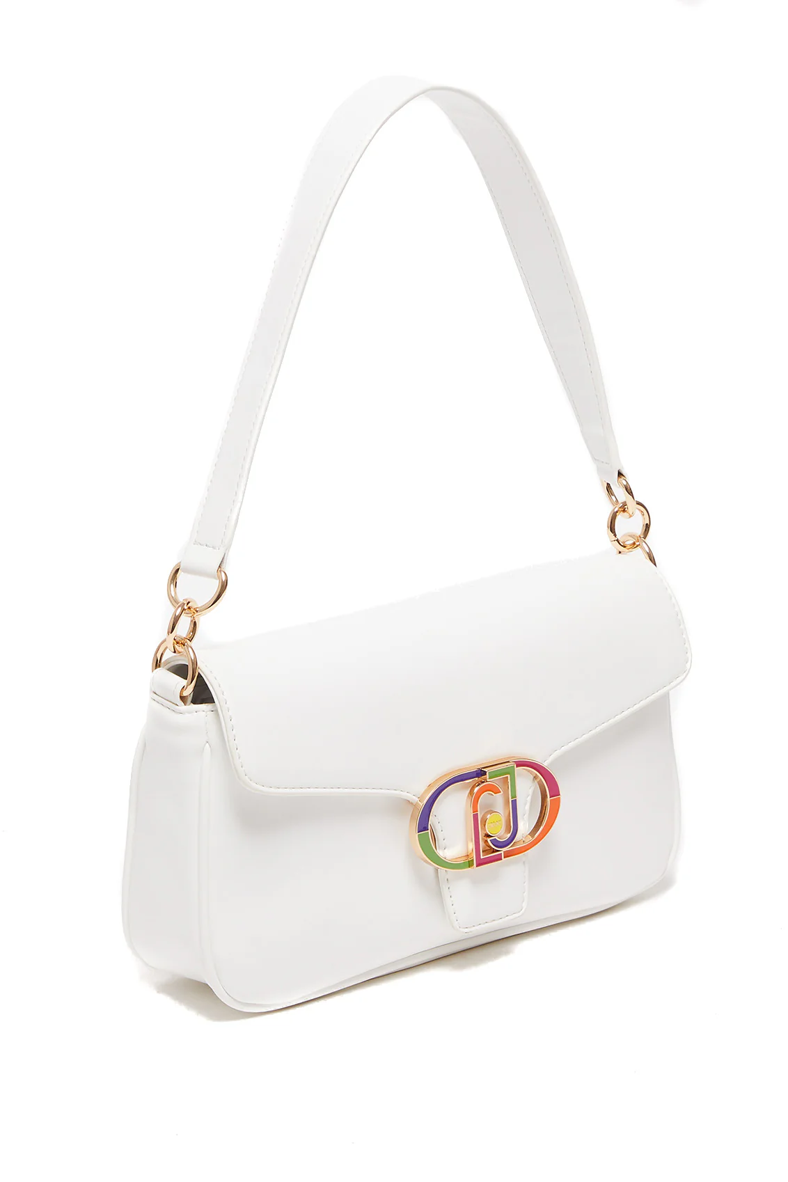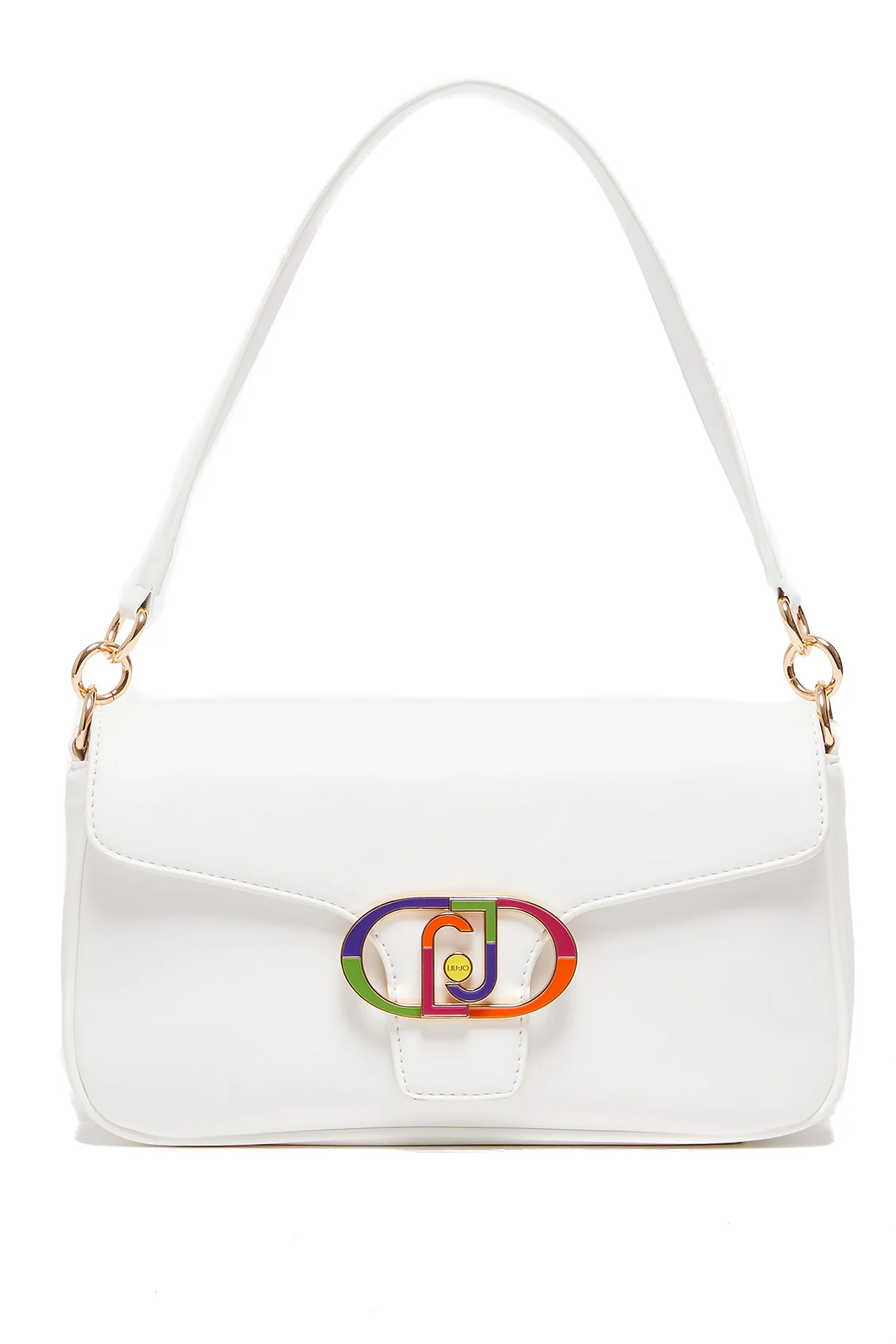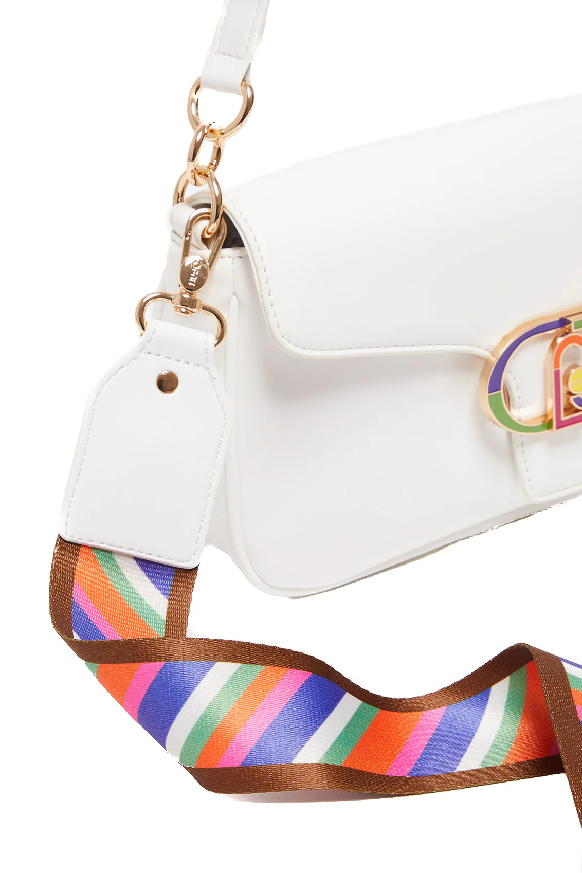 Borsa a spalla bianca ecosostenibile con logo e tracolla multicolor