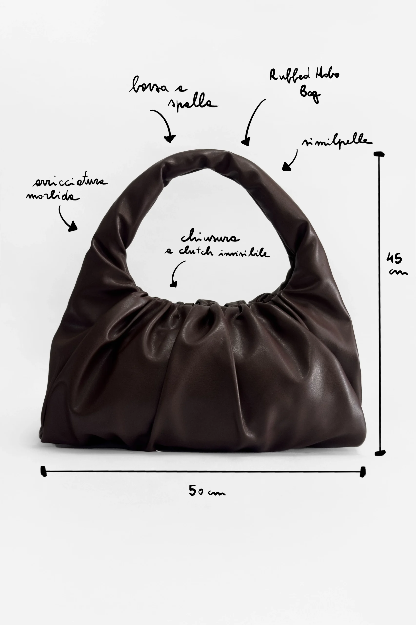 La Ruffled Hobo Bag è l’accessorio must-have della stagione. Questa borsa a spalla in similpelle di alta qualità unisce praticità e stile, perfettamente in linea con i trend del momento. L’arricciatura morbida e la chiusura a clutch invisibile donano un look “messy-chic”, rendendola ideale per chi cerca una borsa trendy e versatile.