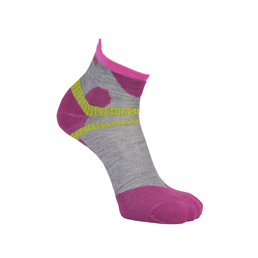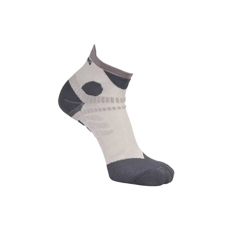 Il design short sock, compatto e aderente, รจ potenziato dal sistema esclusivo X Cross System, una struttura tecnica localizzata nella zona della caviglia che riduce il sovraccarico dei legamenti laterali, offrendo maggiore stabilitร e prevenendo eventuali microtraumi durante la camminata o lโattivitร su terreni irregolari.