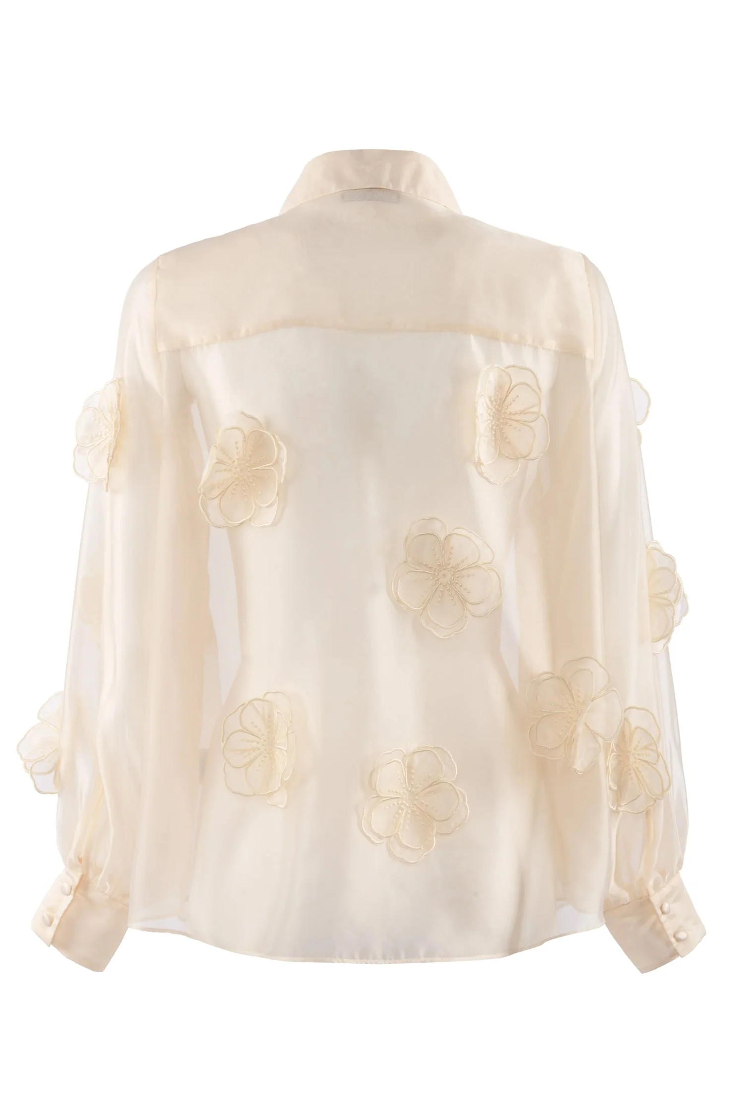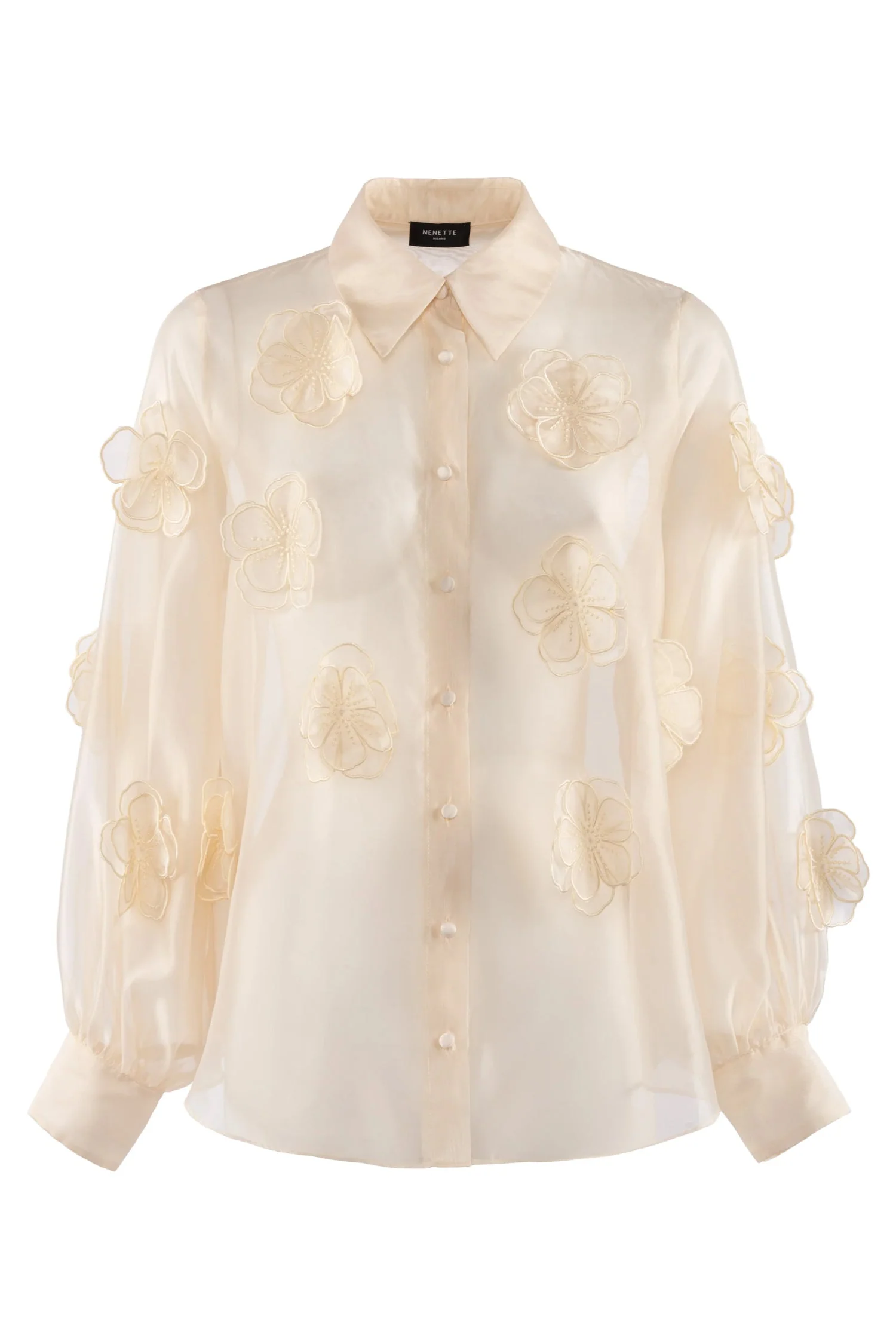 Camicia “Fru” crema trasparente con applicazioni floreali