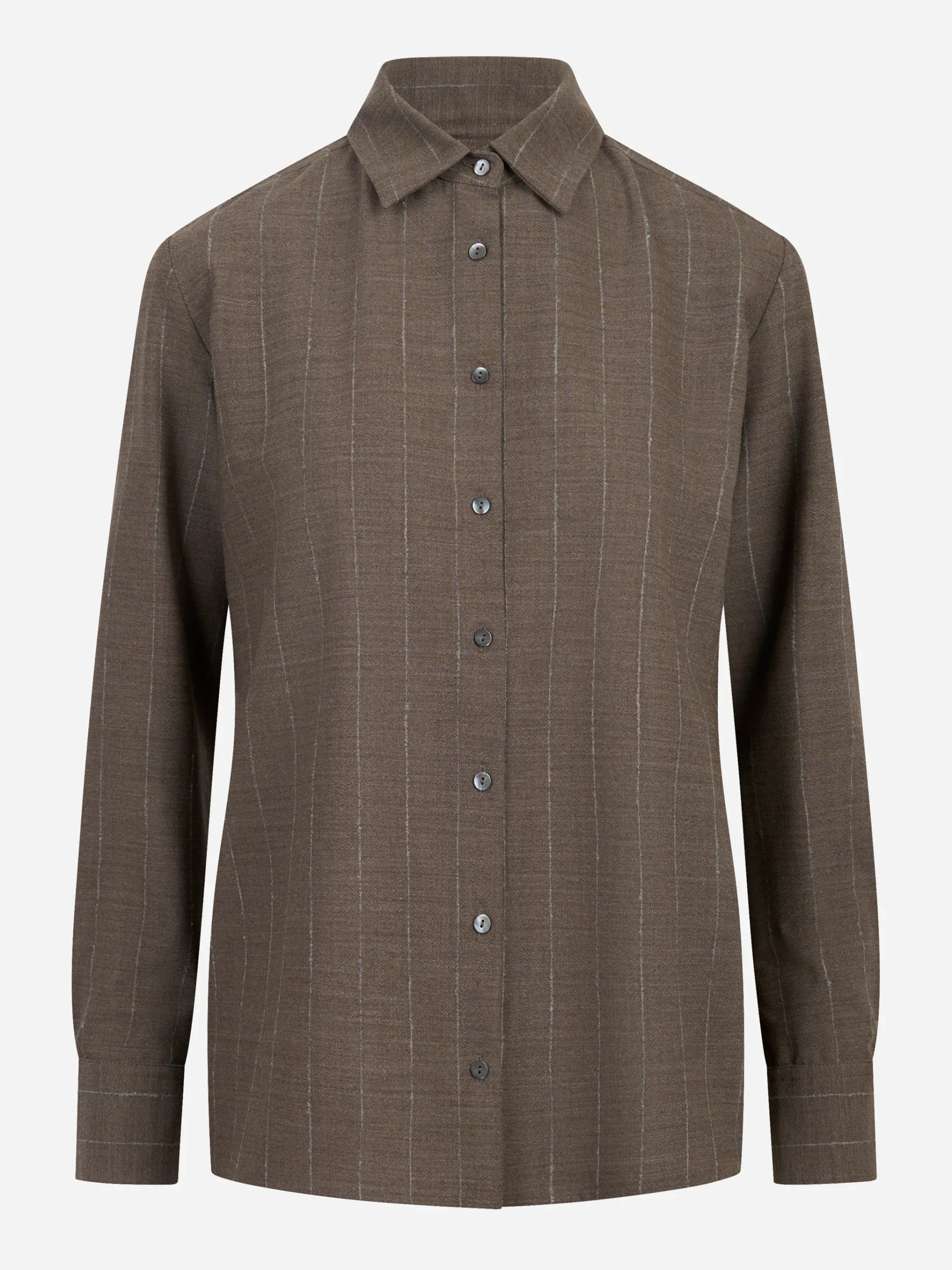ITEM INFO Camicia in fresco lana stretch con motivo gessato Camicia in fresco lana stretch a righe gessate Colletto classico e abbottonatura frontale Polsi con bottone Linea dritta e confortevole Composizione: 96% lana vergine, 4% elastan