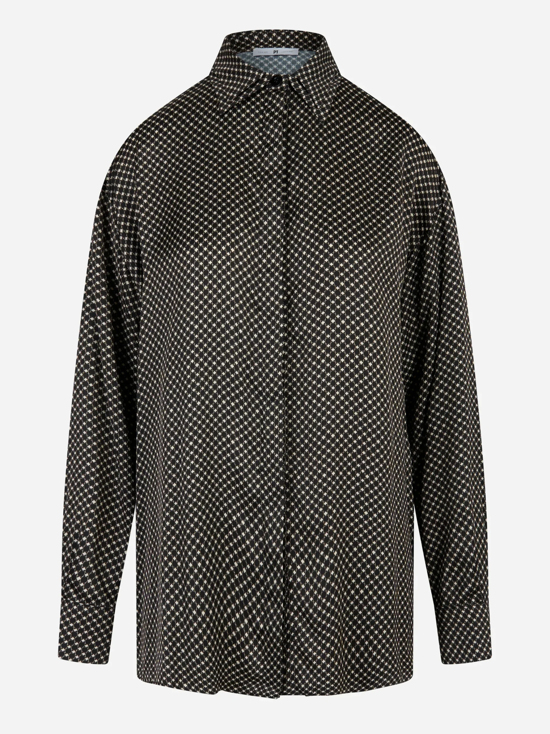 ITEM INFO Camicia in viscosa stampata color nero Colletto classico Chiusura frontale con bottoni Maniche lunghe con polsini abbottonati Vestibilità morbida Composizione: 100% Viscosa Made in Italy