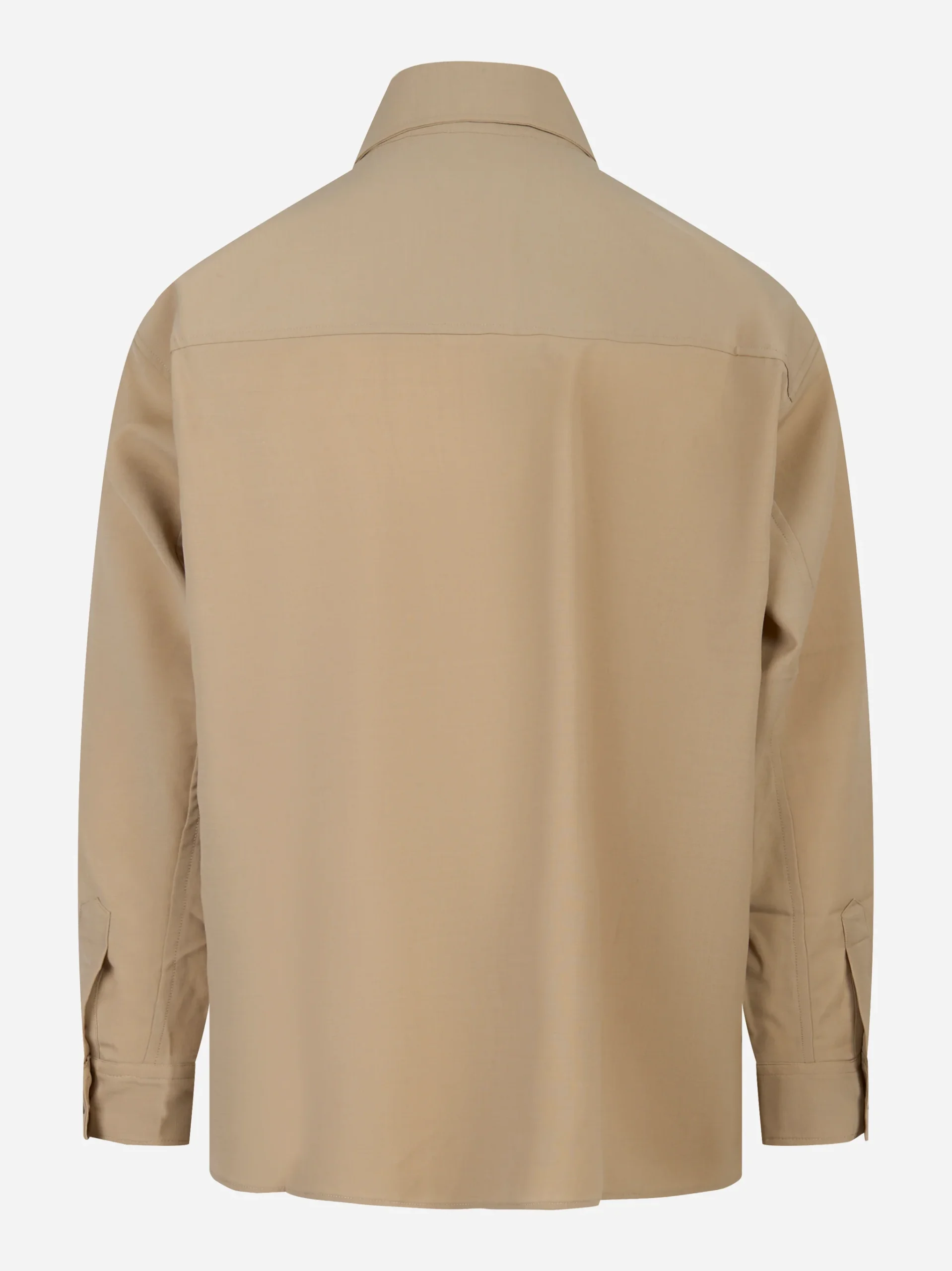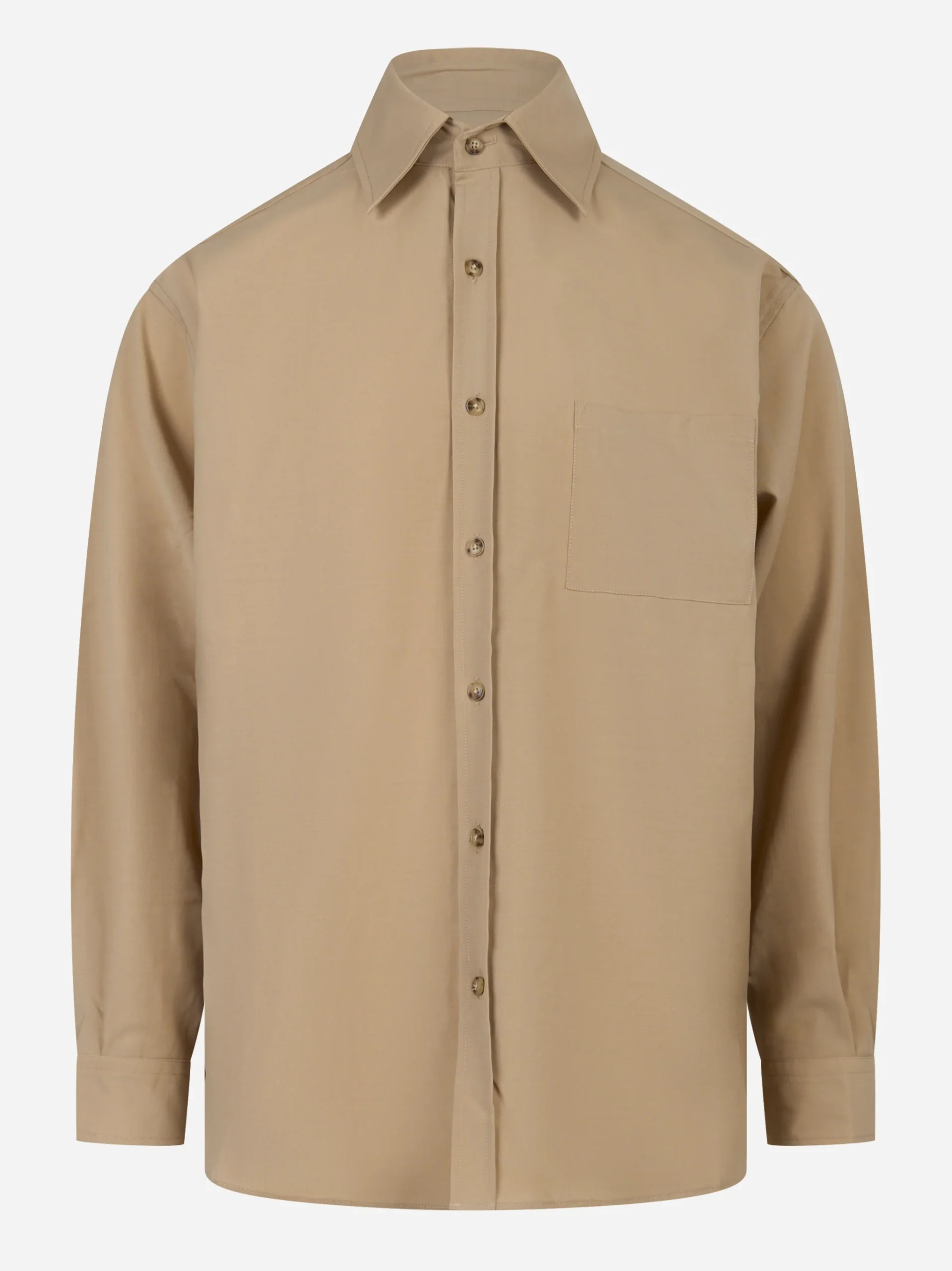 ITEM INFO Camicia over beige con taschino Colletto classico Chiusura frontale con bottoni Taschino applicato sul petto Vestibilità over Composizione: 100% cotone Made in Italy
