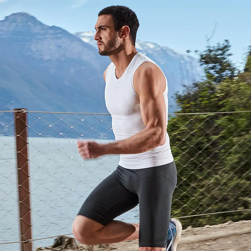 La Maglia 56B è una canotta posturale tecnica da uomo, ideale per affrontare allenamenti intensi o giornate particolarmente calde grazie all’effetto rinfrescante del tessuto Nilit® Breeze.