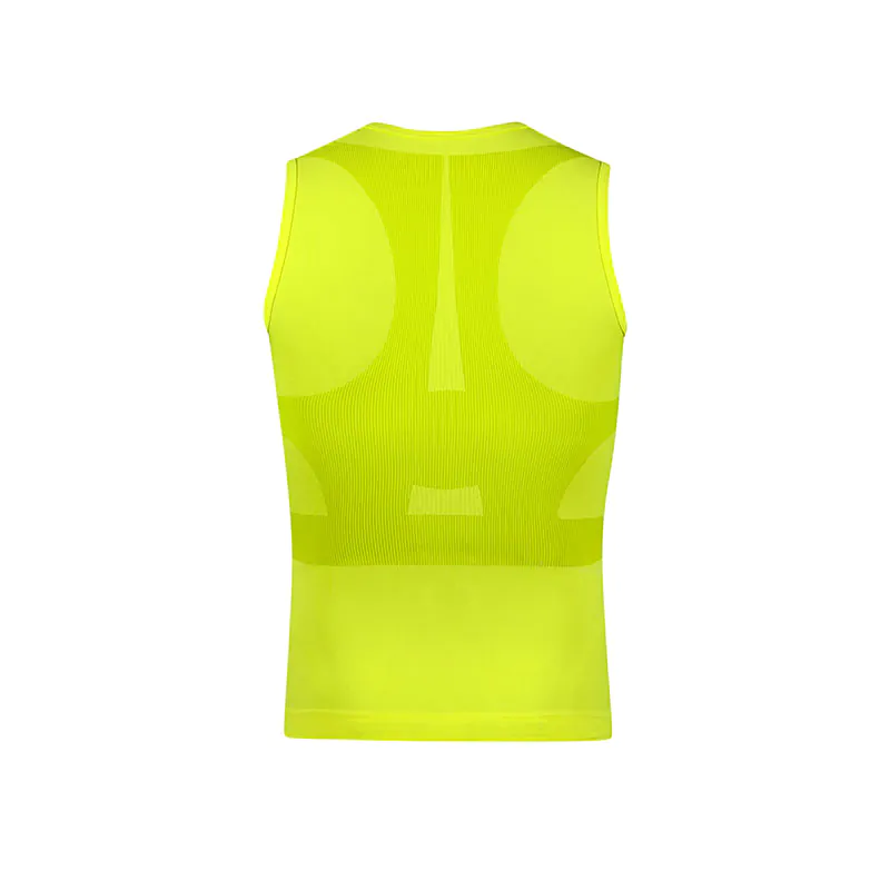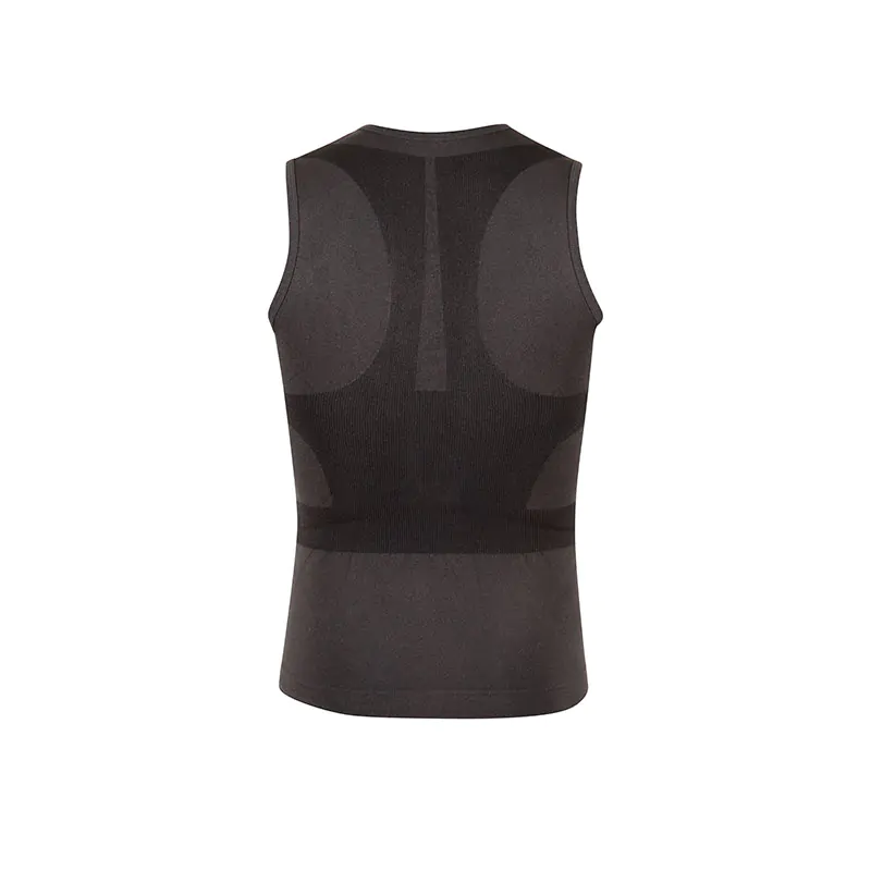 Realizzata con una speciale microfibra ad alta tecnologia, questa canotta riduce la temperatura corporea superficiale e aiuta a mantenere il corpo fresco anche sotto sforzo. La struttura è pensata per offrire supporto posturale mirato, con una pressione localizzata nella zona delle spalle che favorisce l’allineamento muscolare e migliora la qualità della respirazione.