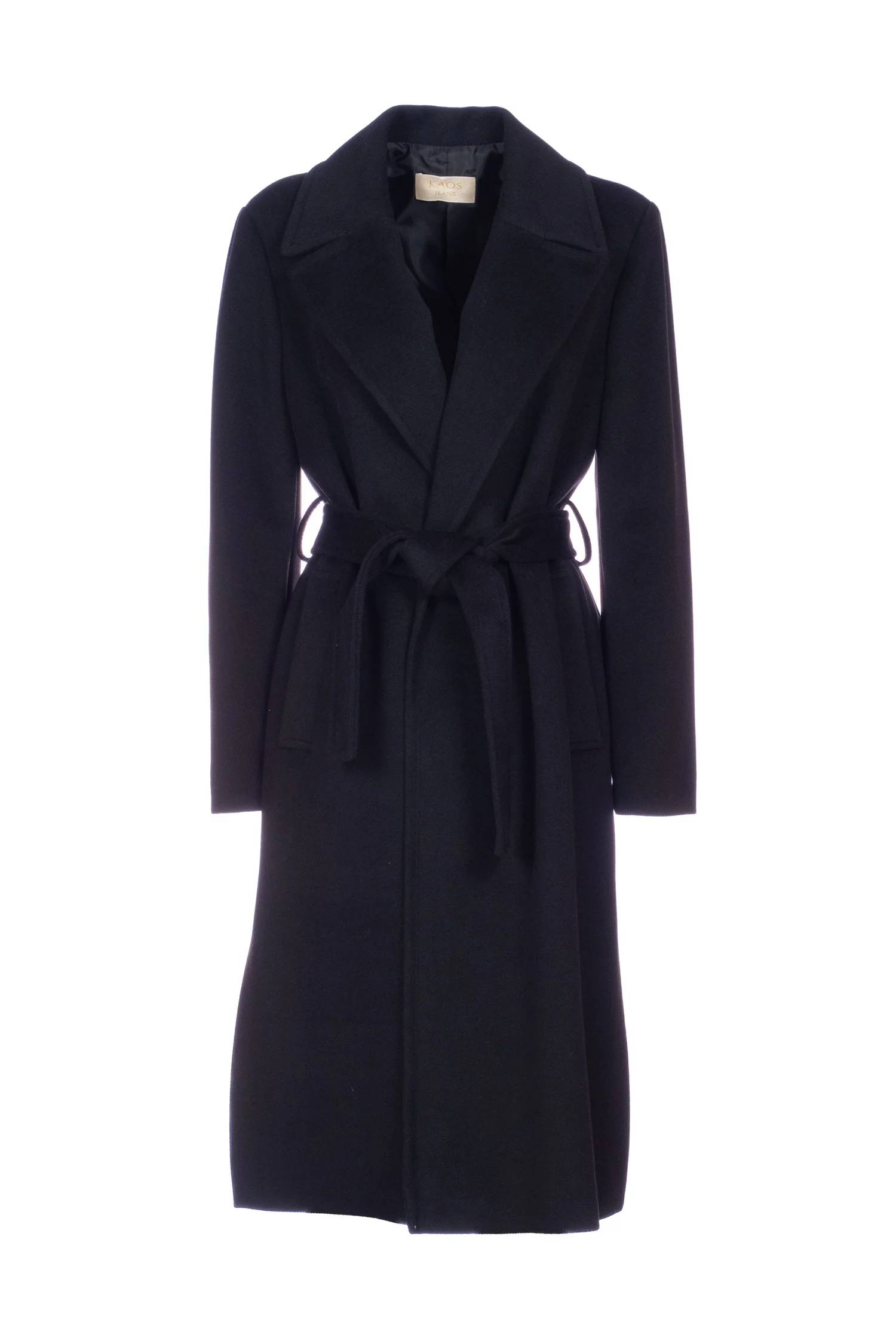CAPPOTTO LUNGO IN PANNO CON CINTURA.