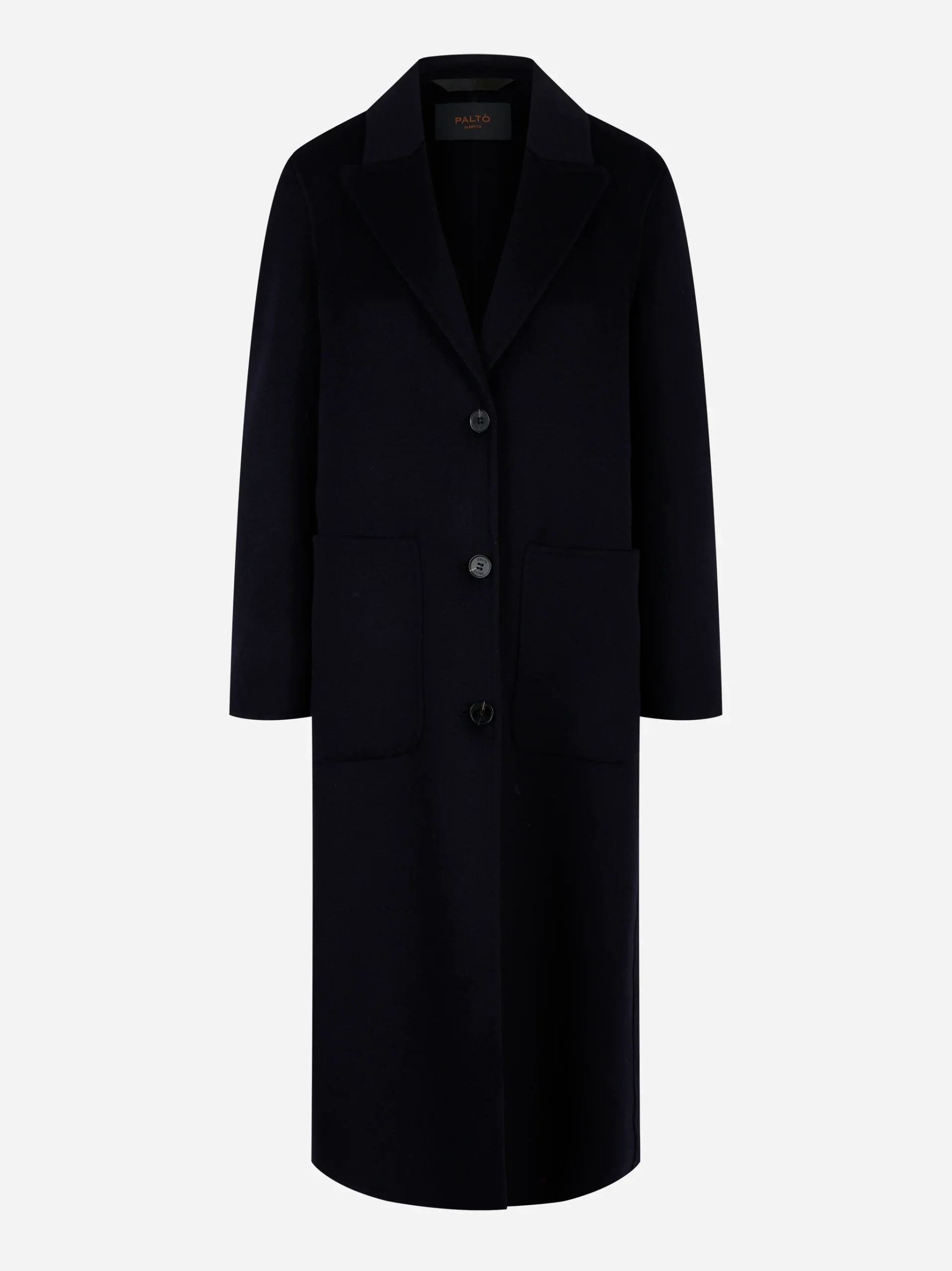 ITEM INFO Cappotto monopetto Elsa in lana double Blu Revers classici e linea pulita Chiusura con bottoni frontali Tasche laterali a filetto Lunghezza al ginocchio Composizione: 100% Lana Made in Italy