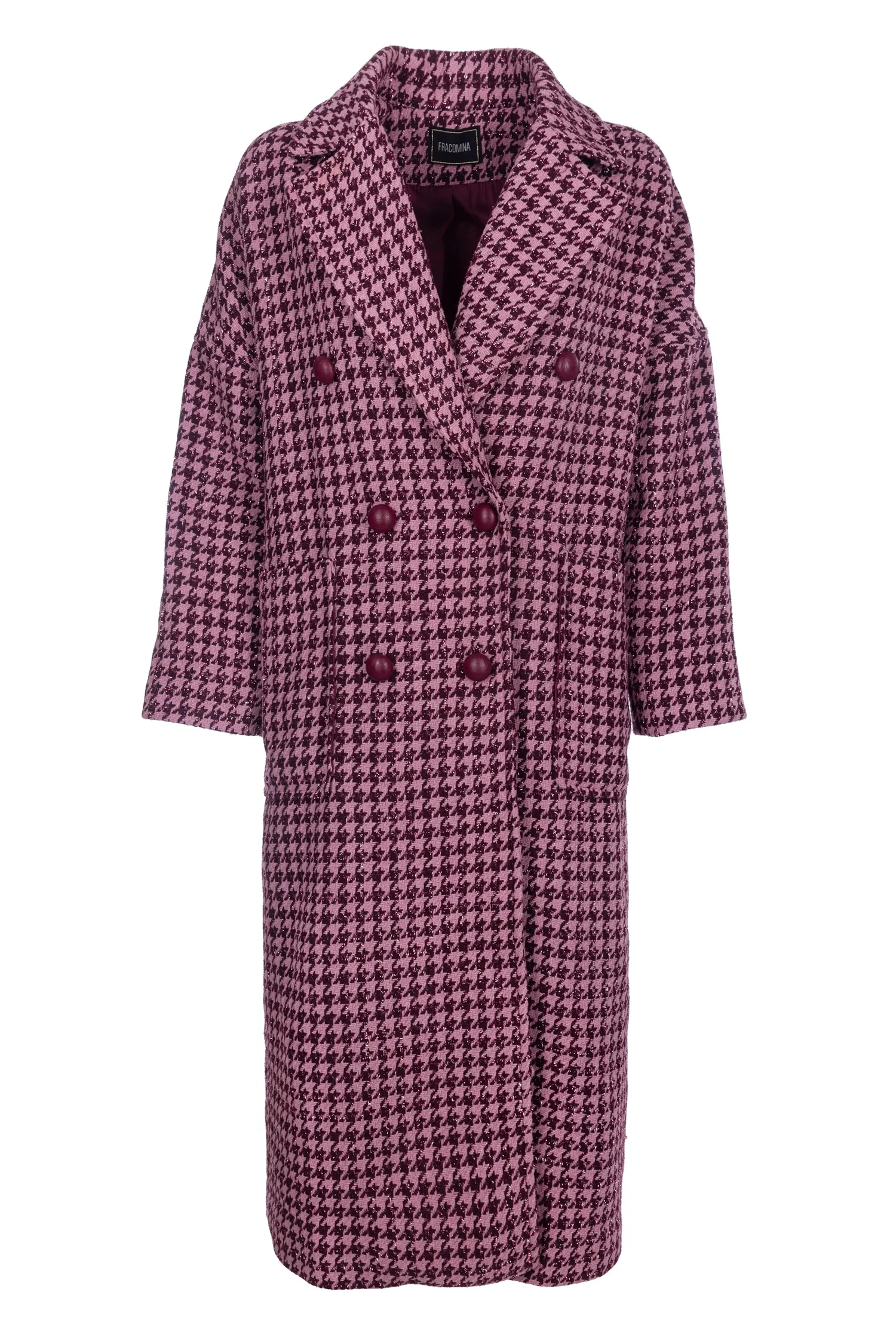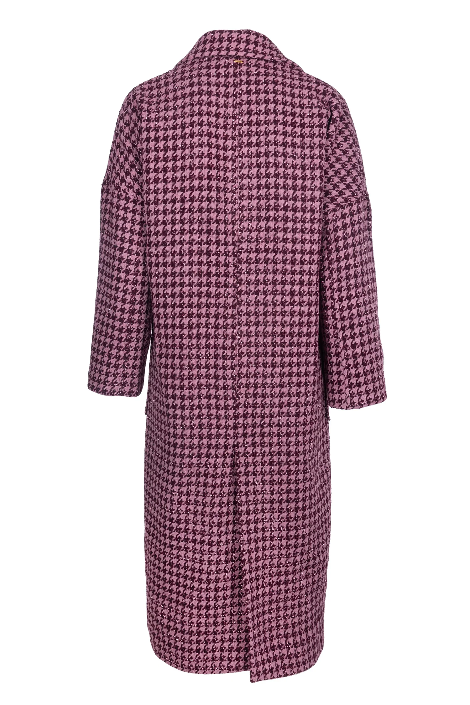 Codice Prodotto: FS22WC1008W57201-L57 Dettagli:Cappotto over lungo in pied de poule, doppio petto, revers classico, bottoni centrali per apertura, tasche applicate, e con maniche a 3/4. SHELL: POLYESTER 80% WOOL 20% – LINING: POLYESTER 98% ELASTANE 2% Vestibilità:Regolare
