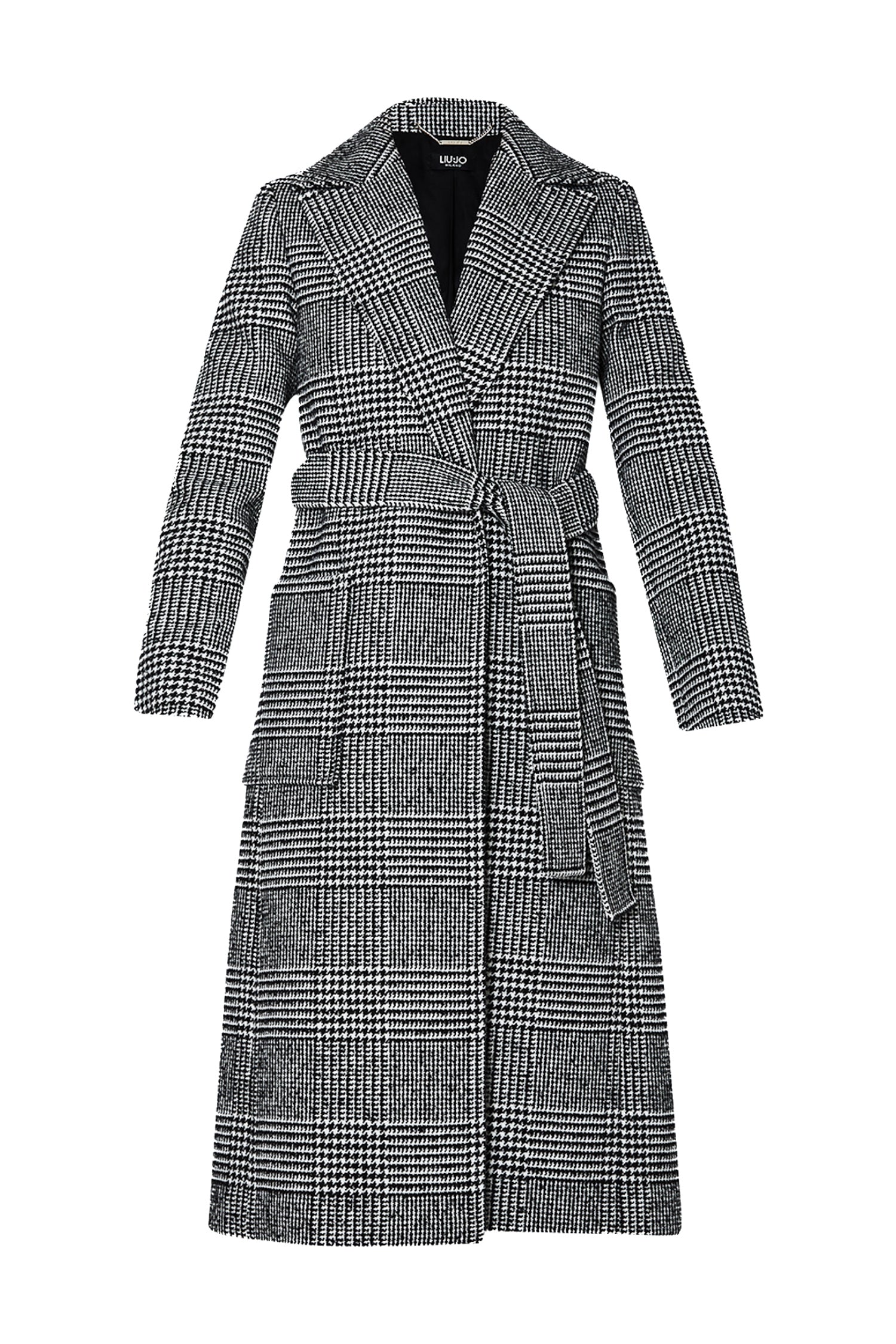 Tra i cappotti donna questo affascina per la sua elegante trama in principe di Galles. Un cappotto lungo donna dal taglio a vestaglia, proposto in caldi filati di misto lana e stretto sul punto vita dalla cintura ton sur ton.
