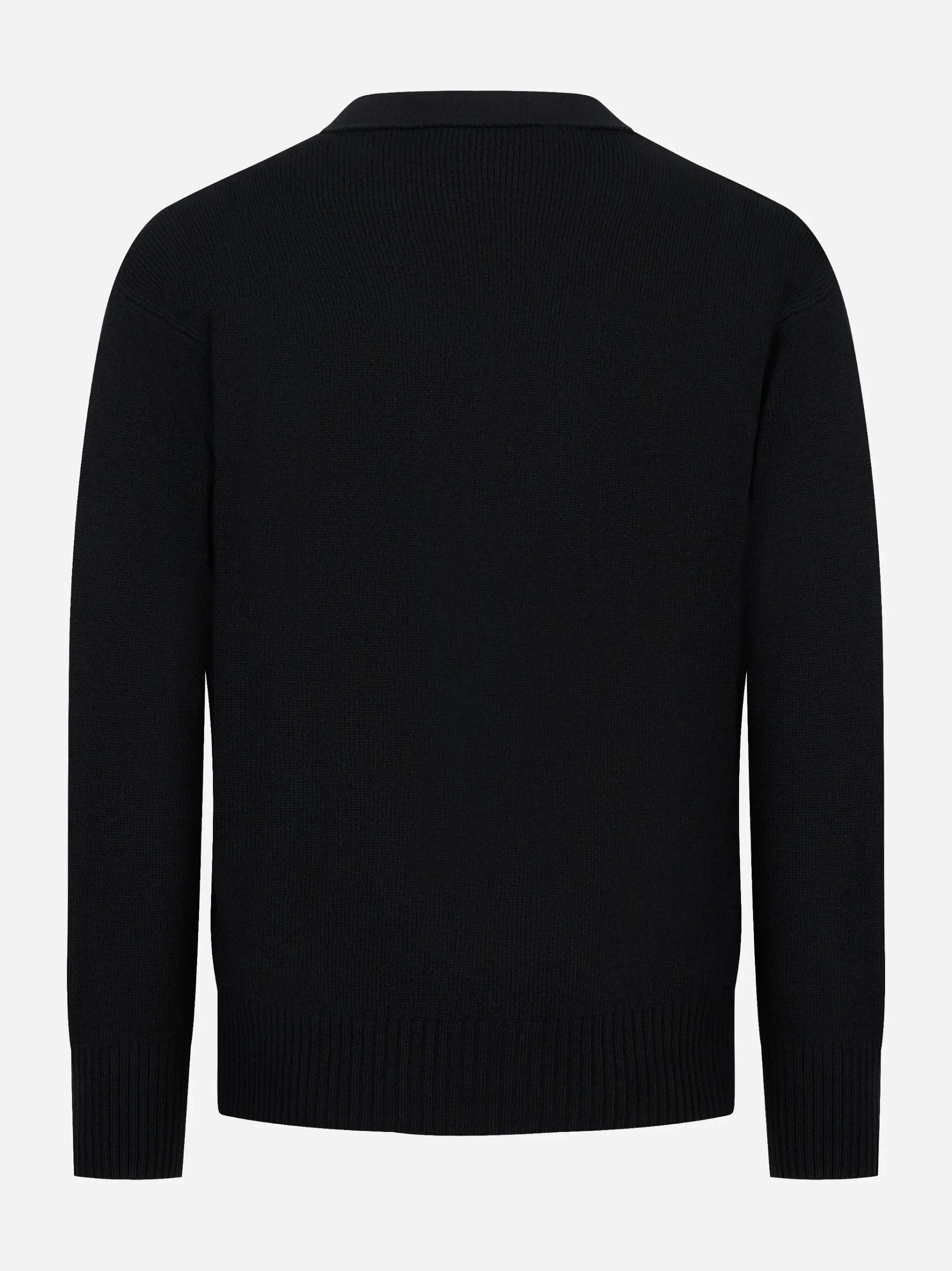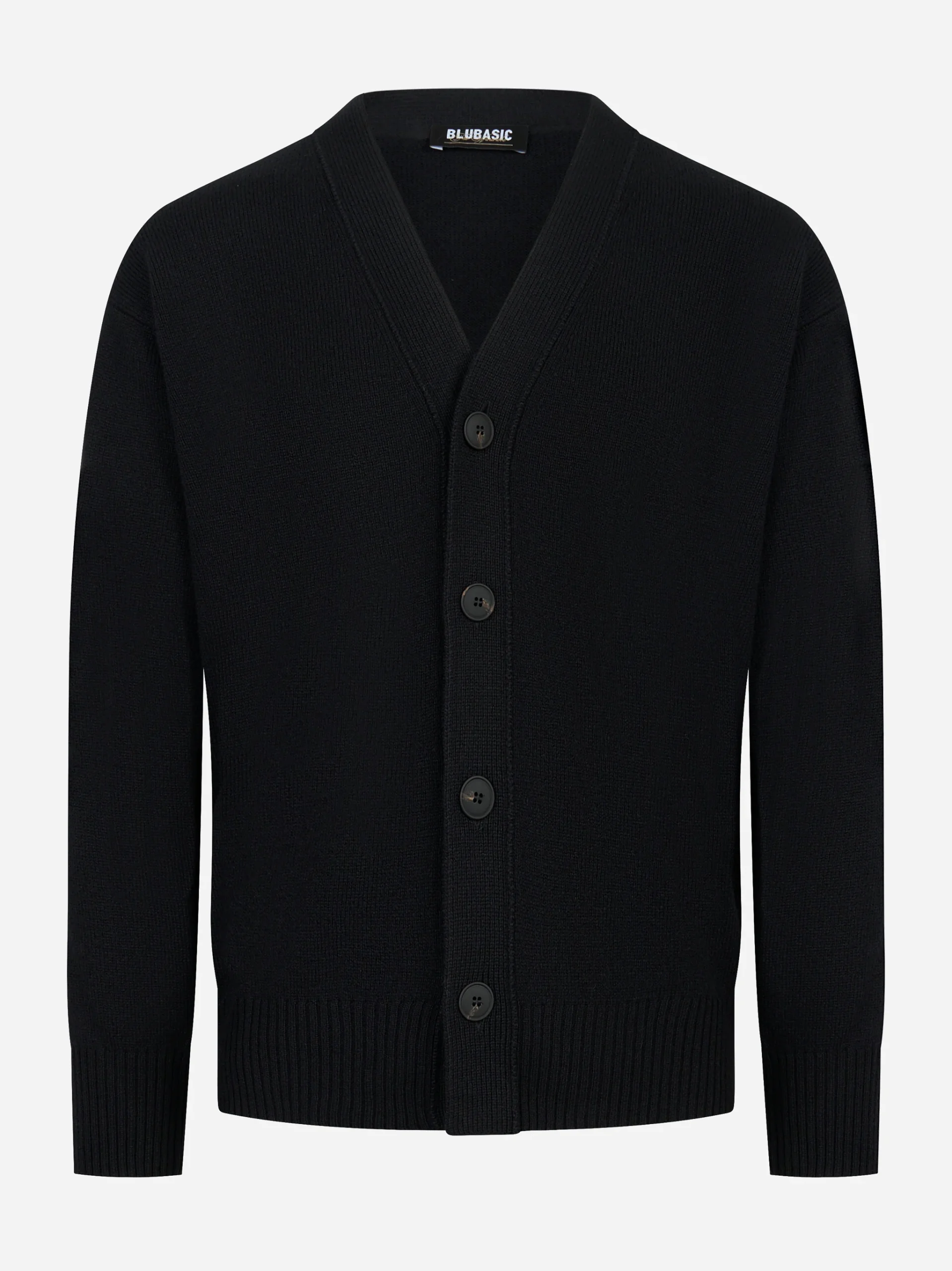 ITEM INFO Cardigan con scollo a V e chiusura a bottoni Maglia a costa compatta effetto geelong Spalla confortevole e linea regolare Bordi a costine su fondo e polsi Manica lunga, peso medio Tono nero facile da abbinare Essenziale del guardaroba maschile firmato BLUBASIC Composizione: 100% lana vergine