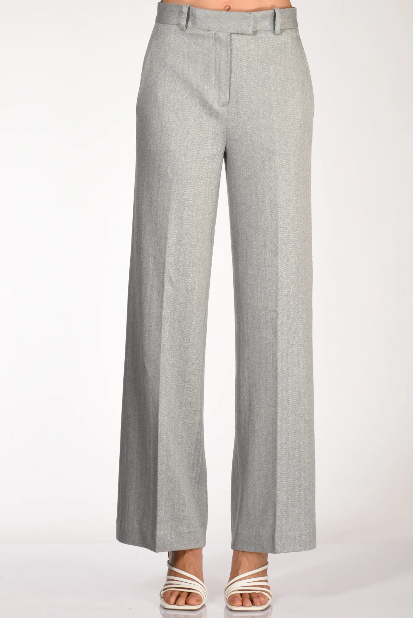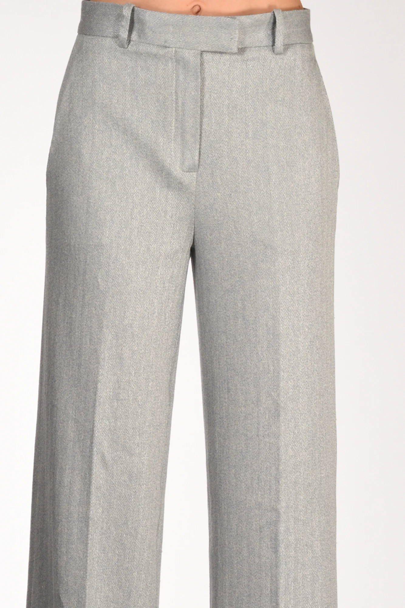 Pantaloni Vita Alta Con Passanti, Gamba Larga, Chiusura Zip E Gancio Metallico Nascosti, Tasche Laterali Alla Francese E Posteriori A Filetto Con Bottone, Vestibilita’ Regular, Made In Romania, Composizione 80 Lino, 20 Cotone,