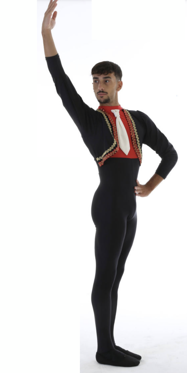 Un bellissimo accademico per una coreografia spagnoleggiante. Capo realizzato sartorialmente su ordinazione, tempi di consegna variabili.