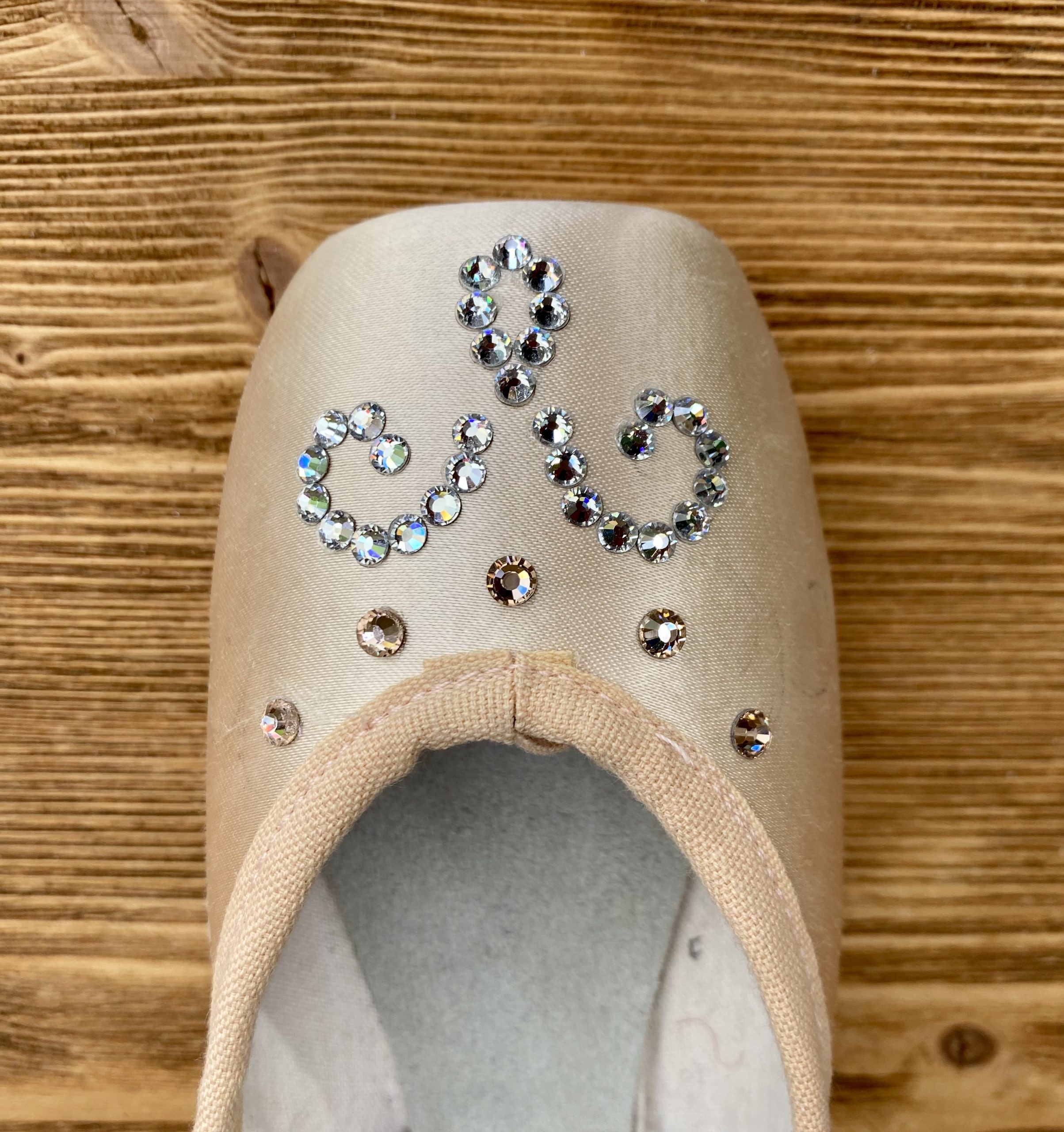 Aggiungi un tocco di luce sulle tue punte! Possiamo realizzare questa decorazione di Swarovski sulle scarpette da punta, un luccicante sfizio che illuminerà il tuo allenamento quotidiano o il tuo saggio di danza! Assolutamente consigliate se esegui una variazione…