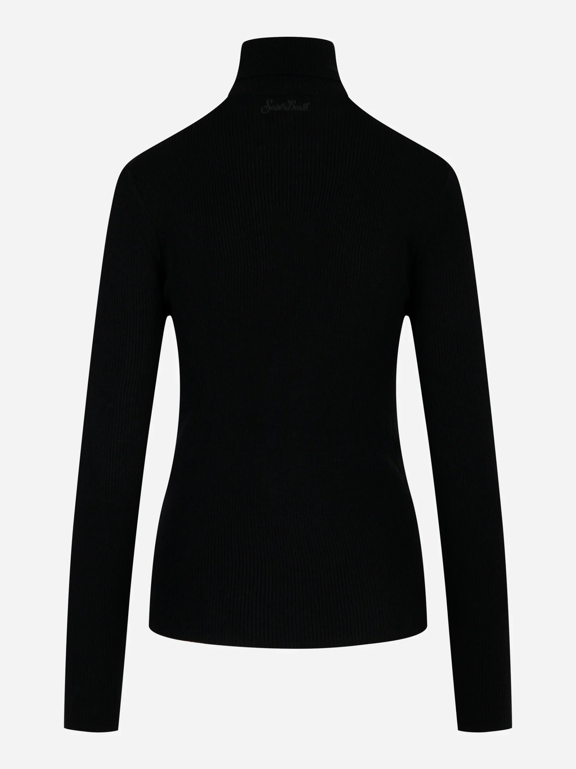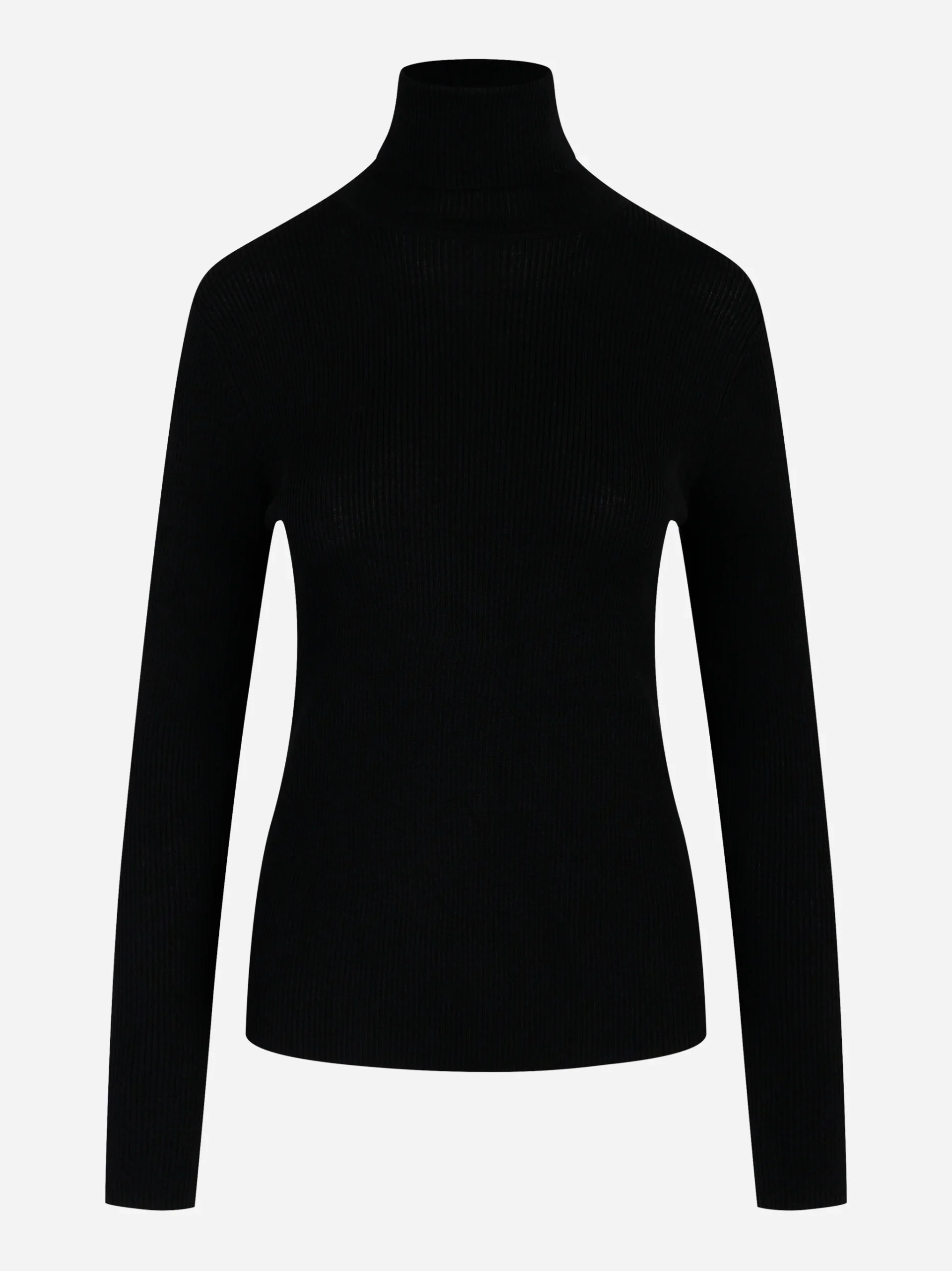 ITEM INFO Dolcevita in lana merinos nero Lavorazione a costine fini Collo alto Maniche lunghe Vestibilità slim Orli rifiniti Composizione: 100% Lana Merinos Made in Italy