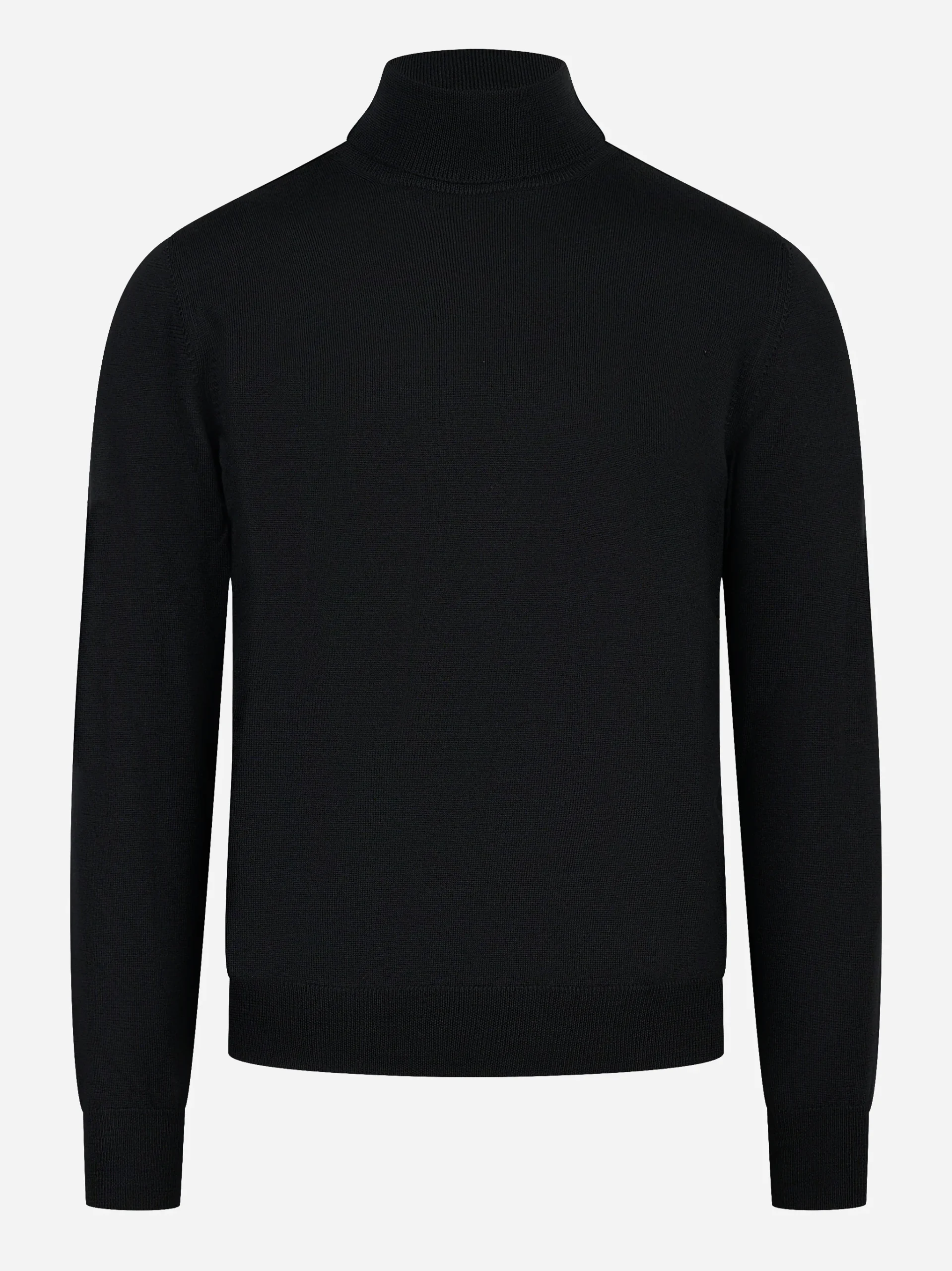 ITEM INFO Dolcevita in lana merinos finezza 12 Maglia compatta e confortevole Linea regular dal profilo pulito Collo alto a costine morbide Polsi e fondo rifiniti a coste Termica ma leggera sotto giacche Tinta nero essenziale Composizione: 100% lana vergine