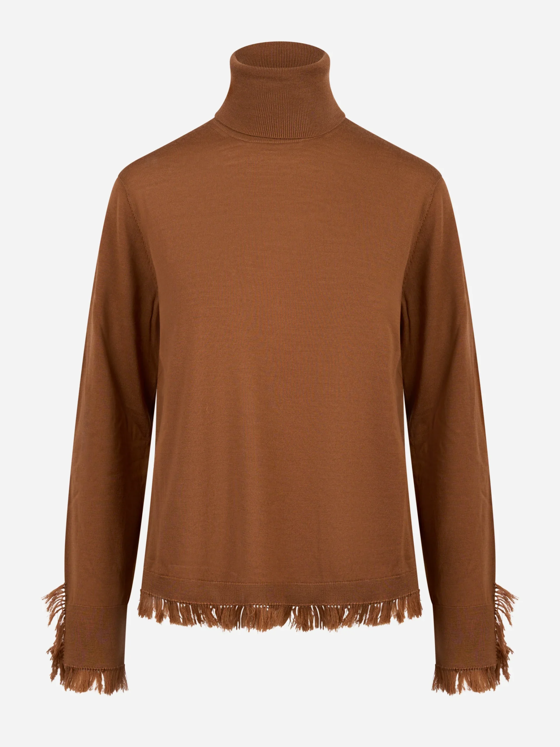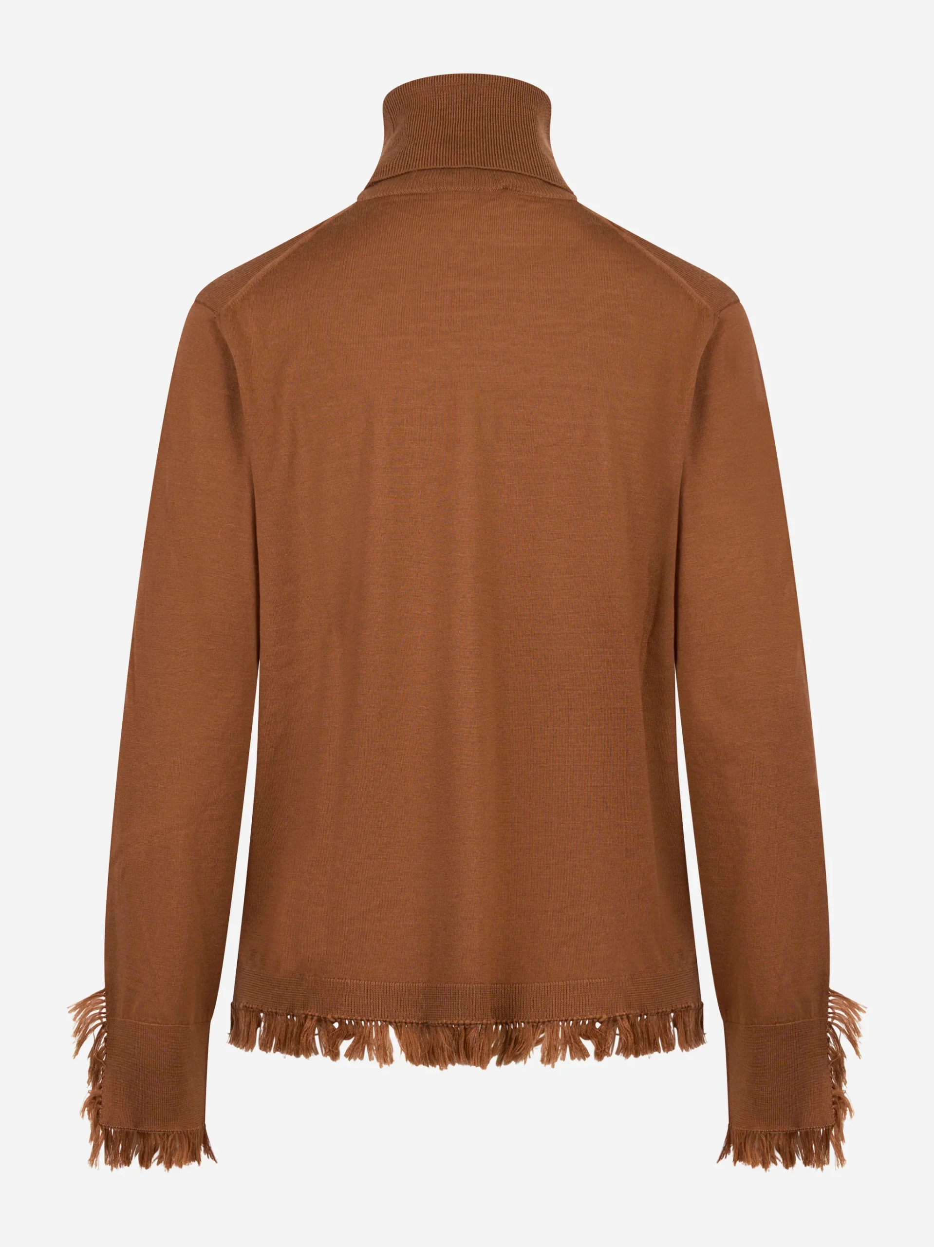 Dolcevita in lana merinos marrone con frange